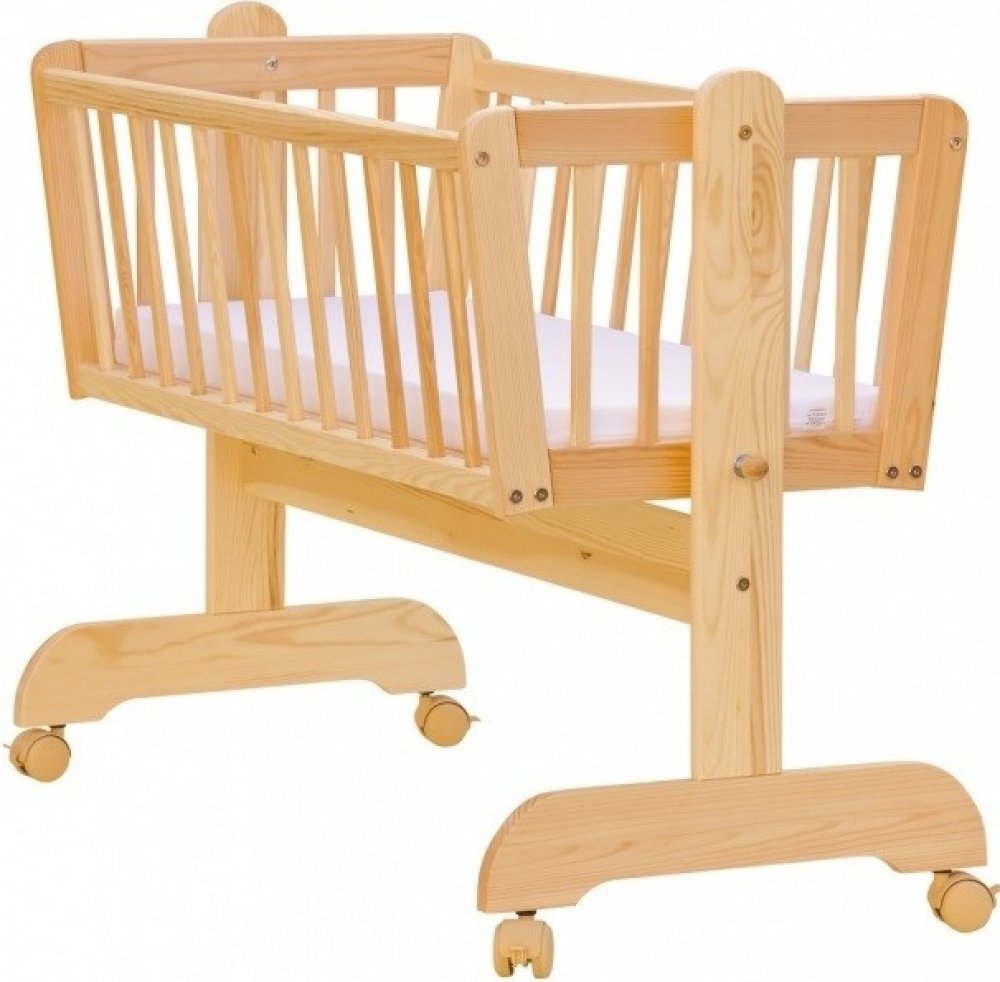Krásná kolébka z borovicového dřeva je ideální pro usínání miminek. Kolébka je doplněná kolečky pro snažší posun po místnosti. Kolébka má i aretaci pro zamezení pohybu houpací části. Rozměr kolébky je 90 x 41 cm. Váha výrobku je 10 Kg. Nafocená matrace není součástí kolébky, ale lze ji objednat.