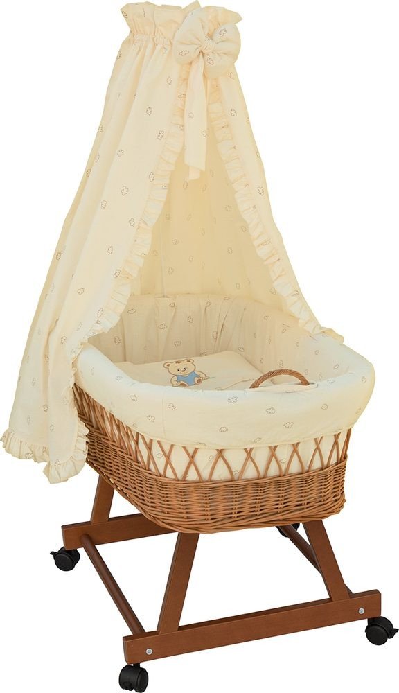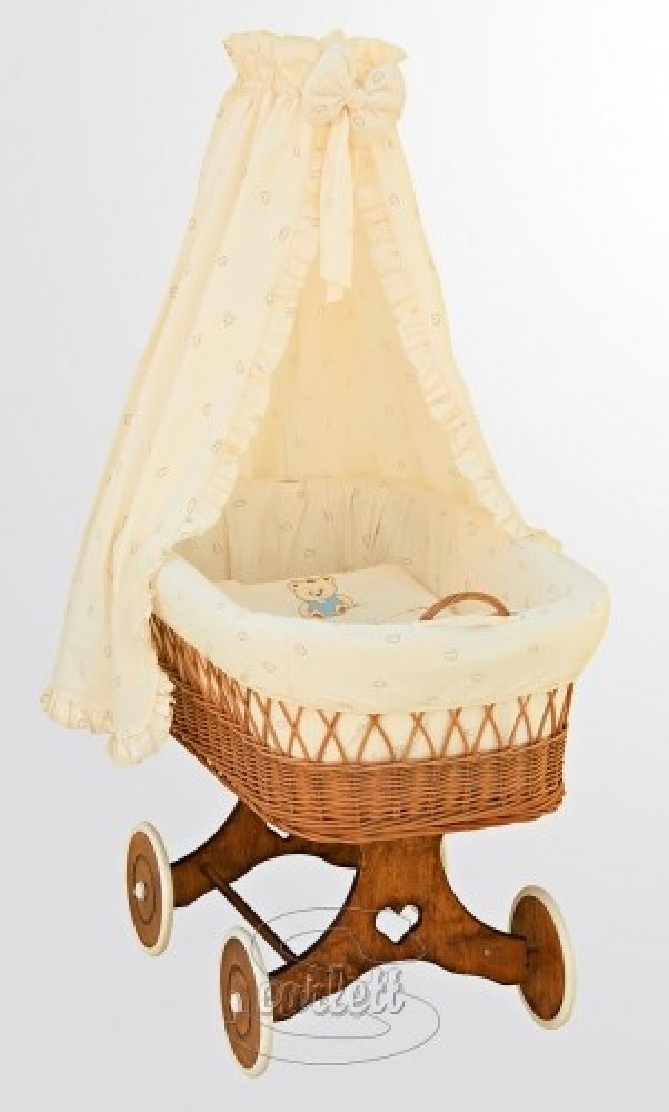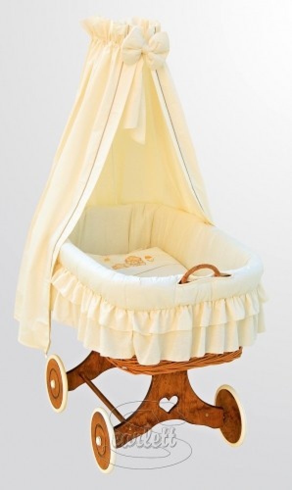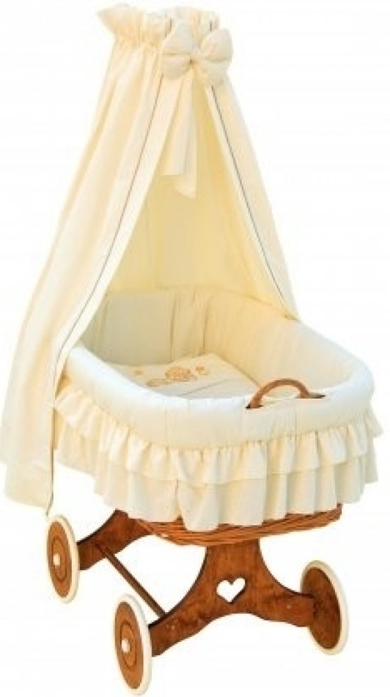 Nádherný a originální proutěný koš pro nejmenší. Velikost tohoto košíku je na našem trhu ojedinělá. Koš je možné používat do doby než začne dítě samostatně sedět. Koš je včetně povlečení a vzpěry na baldachýn. Koš je na kolečkách usnadňuje mamince přejíždět z místnosti do místnosti.