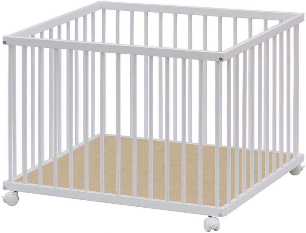 Dno je vyrobeno z MDF pro snazší údržbu. Otvory na kolečka jsou předvrtány, ale kolečka nejsou součástí ohrádky, lze si je doobjednat z naší nabídky. K ohrádce si můžete vybrat z nabídky hracích dek.