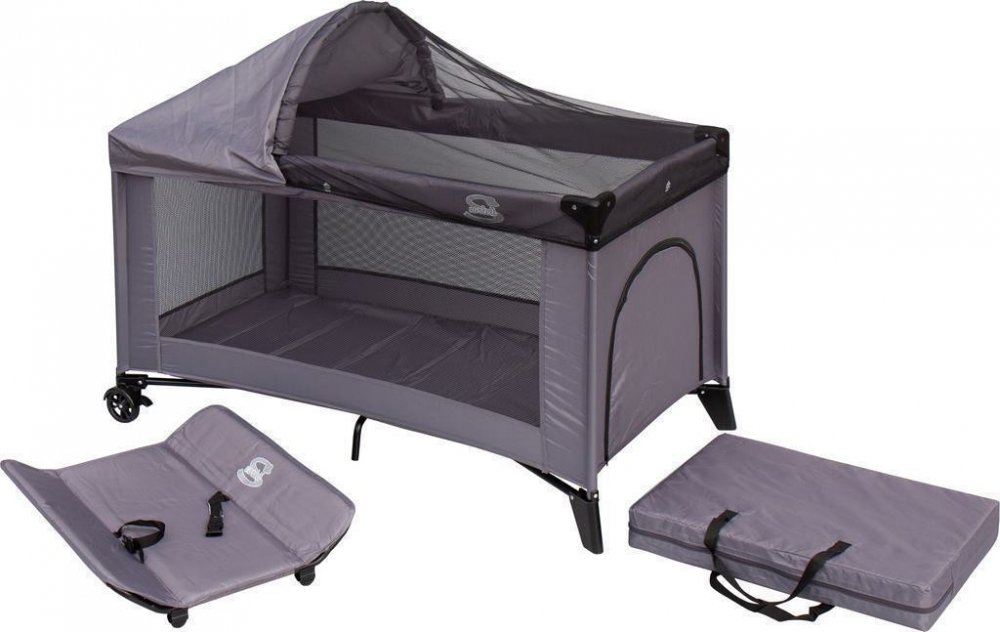 Scarlett Cestovní postýlka Piki s kompletní výbavou šedá