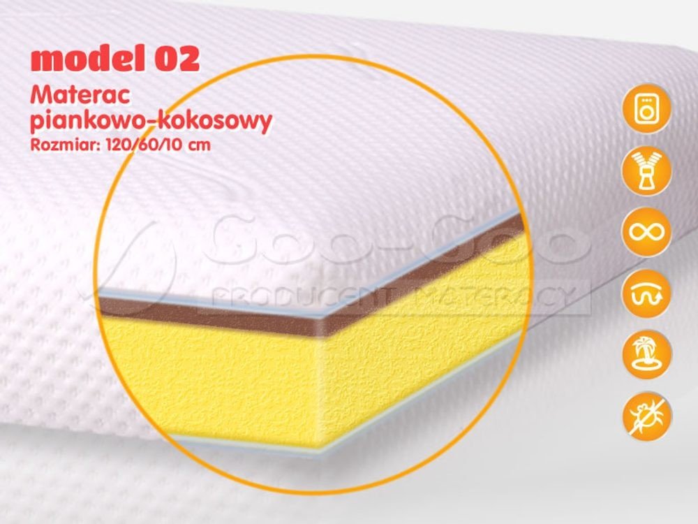 Dětská kokosová matrace je vyrobena z tepelně upravených kokosových vláken v kombinaci s PUR pěnou. Při výrobě je používána speciální tepelná technologie na odstranění všech roztočů (parazitů). Kokosová vlákna jsou dostatečně pevně slisována a spojena kaučukovým mlíčkem do pružně vrstvy. Matrace je potažena polyuretanovým vláknem a vrchní vrstva je 80% bavlna a 20% polyester. Matrace s kokosovým v...