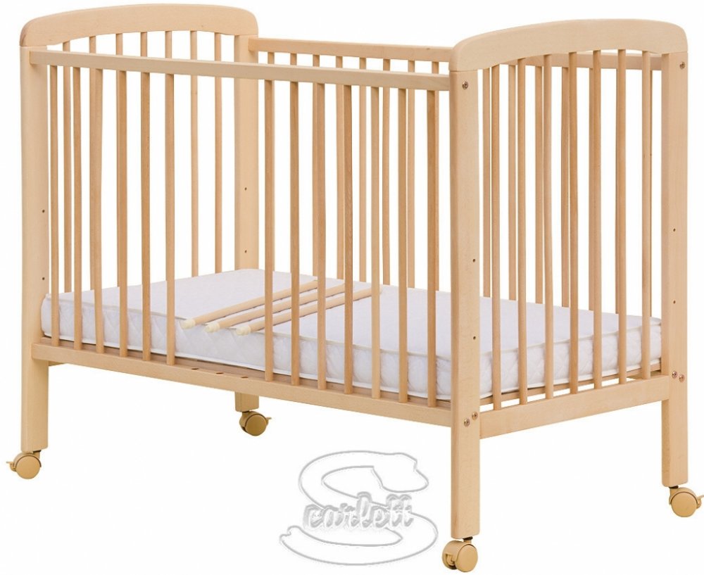 Postýlka Míša obsahuje vyndavací příčky a rošt nastavitelný do dvou poloh. Nohy postýlky jsou předvrtány pro kolečka.