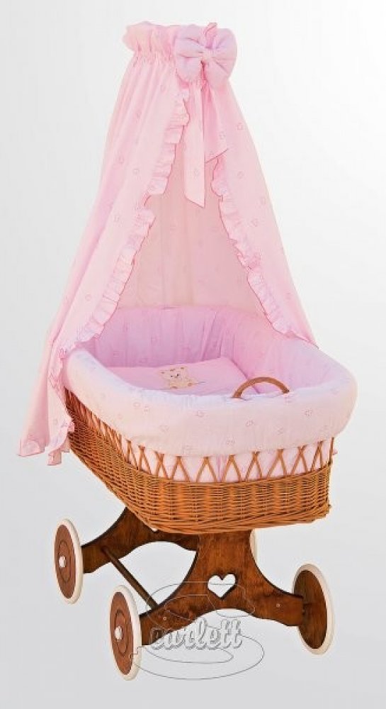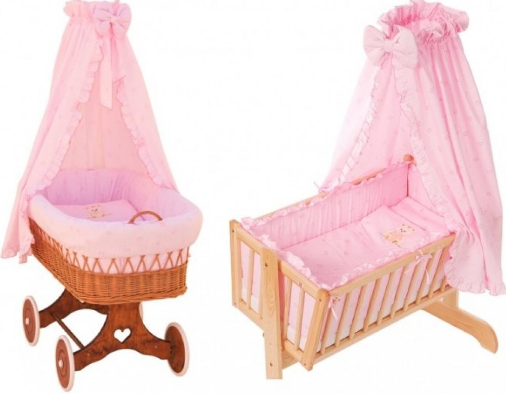 Univerzální bavlněná nebesa, která lze využít jak do kolébky, tak i do koše pro miminko. Nebesa jsou lemovaná malým kanýrkem. Součástí nebes je ozdobná mašle. Barevné provedení: růžová nebesa s potiskem drobných obláčků. Rozměr nebes: výška 130cm, délka 200cm. Držák nebes není součástí - lze jej objednat samostatně. K těmto nebesům lze objednat 6-dílnou výbavu do kolébky se stejným motivem.