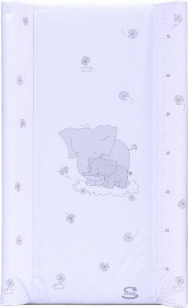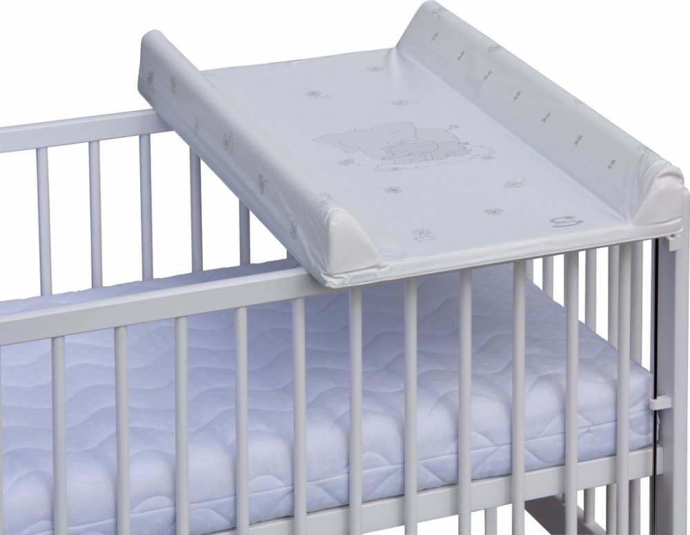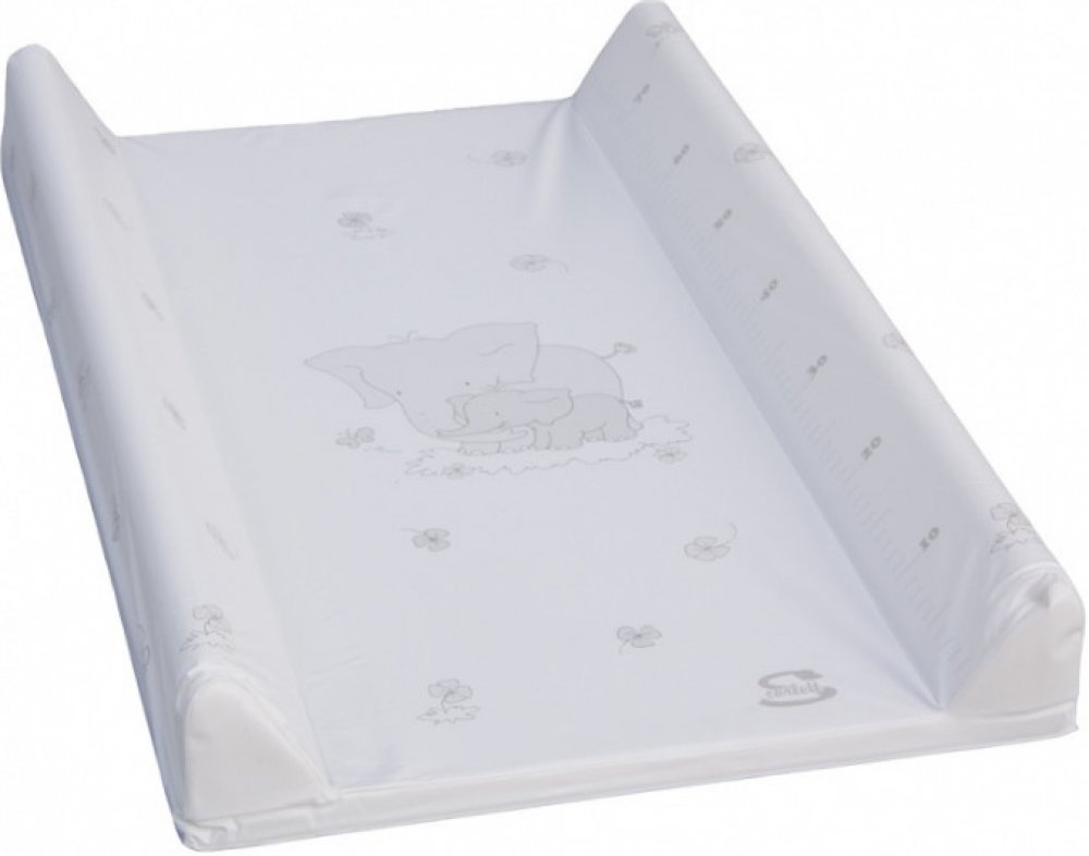 Přebalovací podložka s pevnou vložkou z MDF a profilovanými okraji s kvalitním PVC potahem bez ftalátů, vyplněná molitanem.