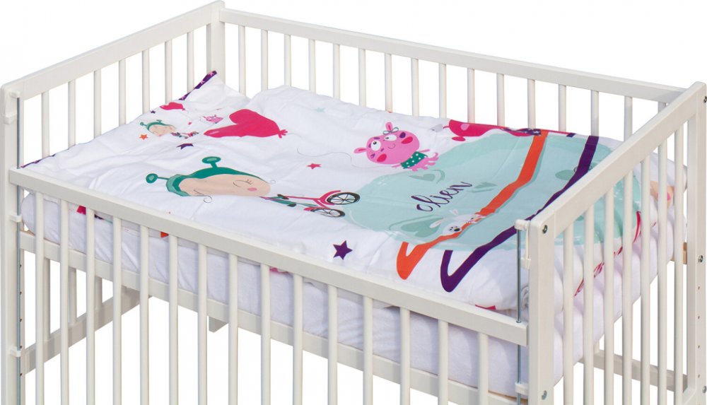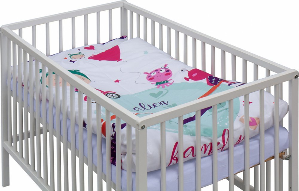 Dětská postýlka s kompletní soupravou povlečení a doplňků Scarlett MolyKomplet obsahuje1. Dětská dřevěná postýlka 120 x 60 cm - bílá, masiv borovice, stahovací bok, 6 poloh roštu2. Matrace 120 x 60 x 6 cm, PUR pěna, potah - 100% bavlna3. Potah na peřinku 135 x 100 cm - 100% bavlna4. Potah na polštářek 60 x 40 cm - 100% bavlna5. Výplň peřinky 135 x 100 cm - polyester, potah mikrofibra6. Výplň polšt...