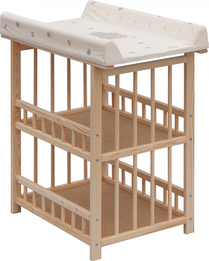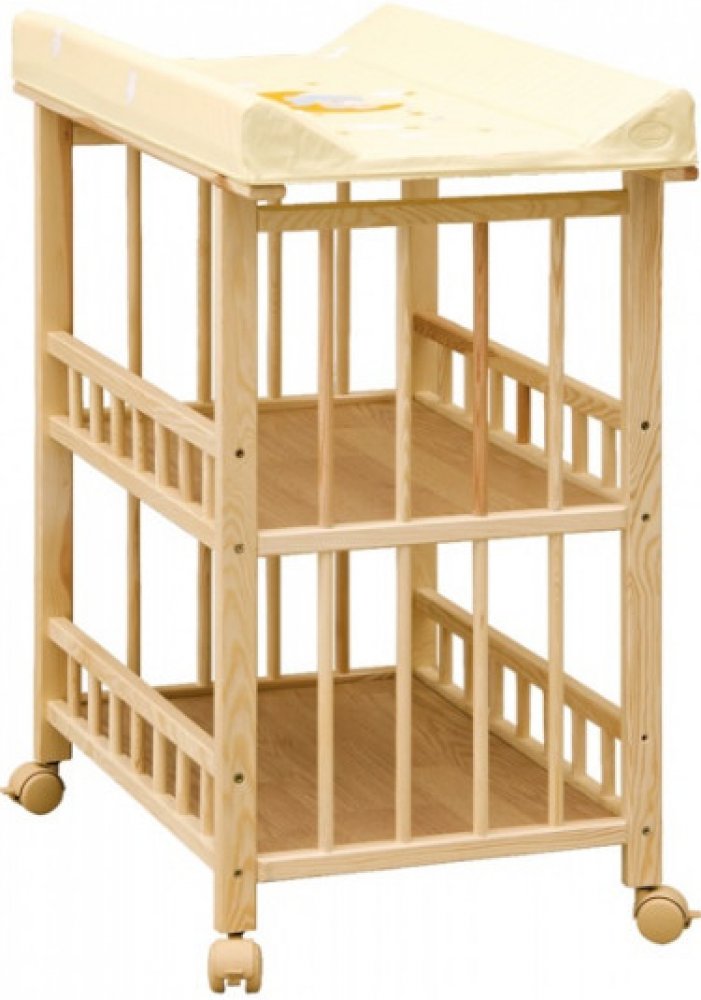 Přebalovací pult Jáš z borovicového přírodního dřeva bez povrchové úpravy.Součástí přebalovacího pultu je i přebalovací podložka.Kolečka nejsou standartní součástí přebalovacího pultu, ale je možné je objednat z naší nabídky.Ve spodní části pultu jsou dvě police na odkládání věcí potřebných k přebalování.