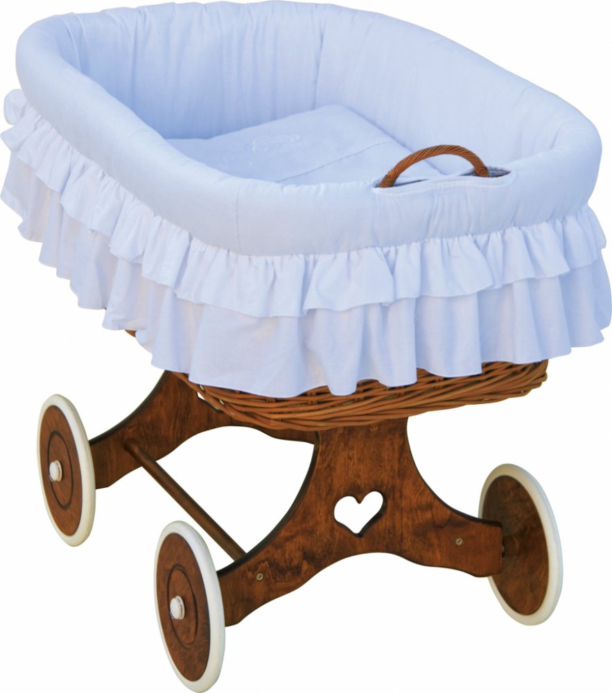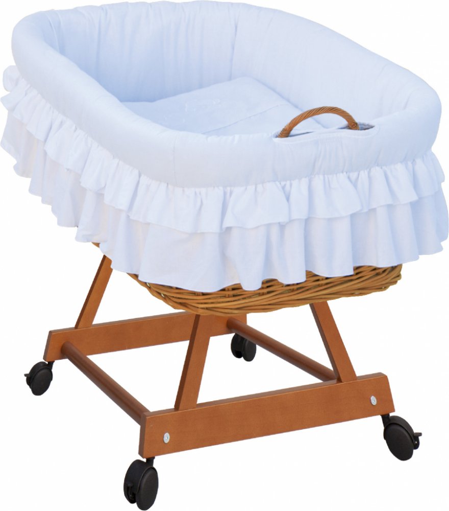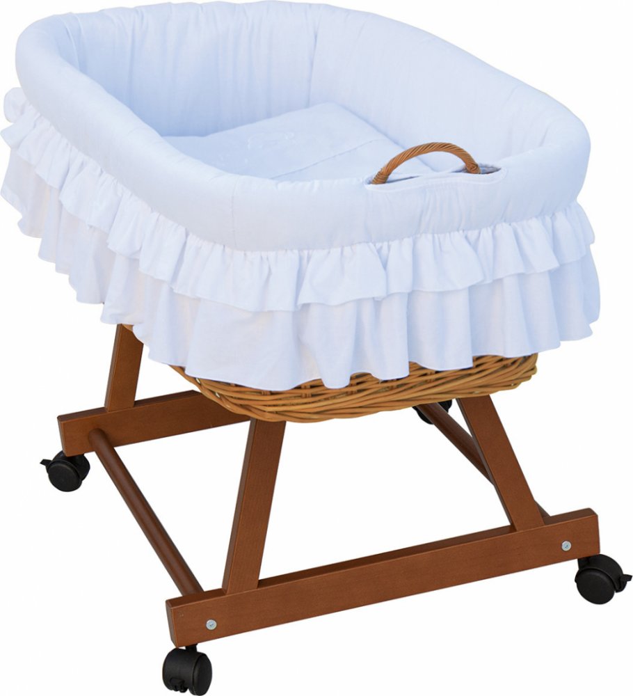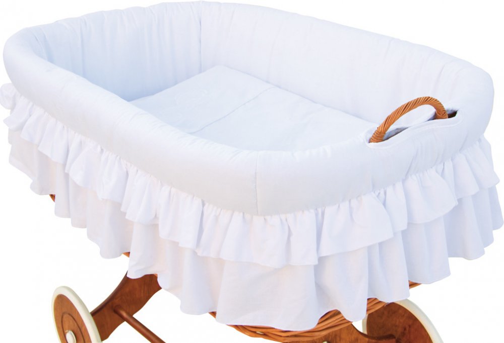Dětský proutěný košík pro miminko na pojízdných kolech s výbavou v romantické bílé barvě kolekce : Martin bílá
