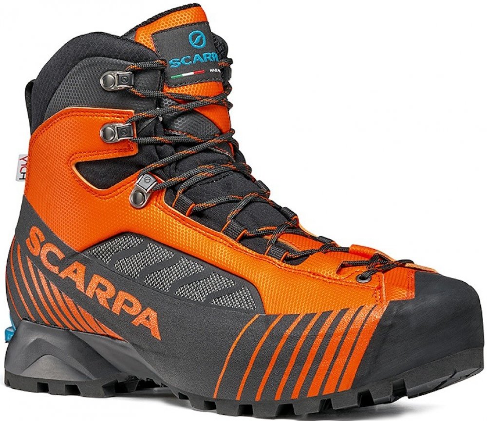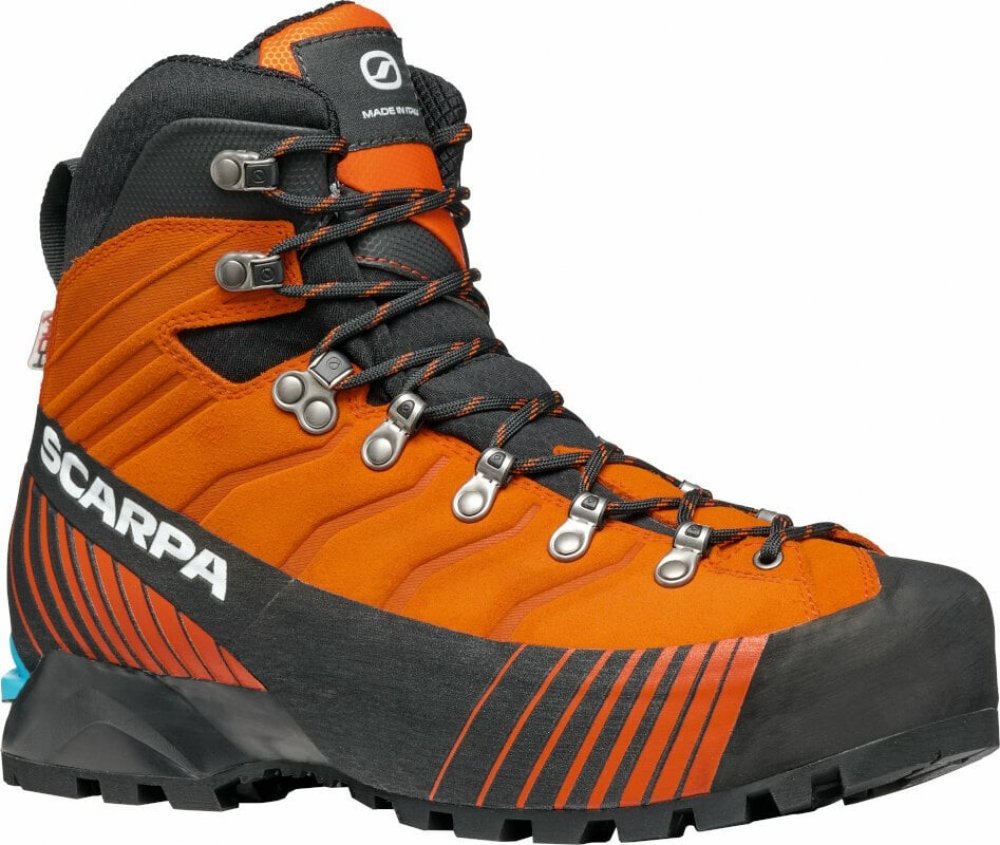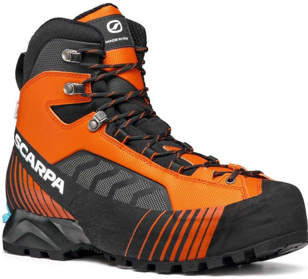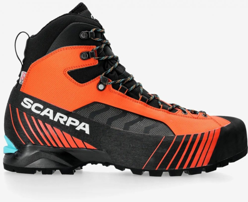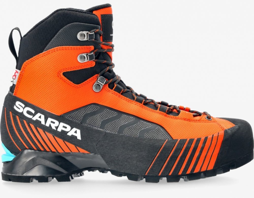 Scarpa kotníkové kůže 1380.0 g na náročný horský terén na lezení a ferraty oranžová pohorky Ribelle Lite Hd HDry B5, Vibram zimní na šněrování standardní šířka s plnou výbavou na vysoce náročnou turistiku pro poloautomatické mačky s tuhou podešví s obsázkou po obvodu - 360° PU Vibram