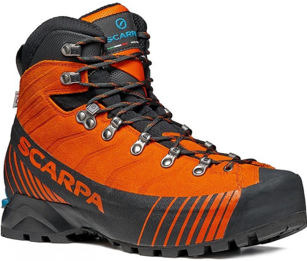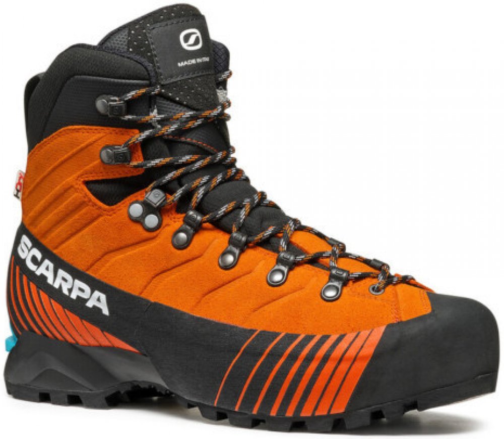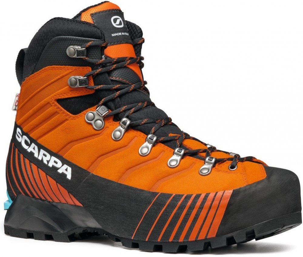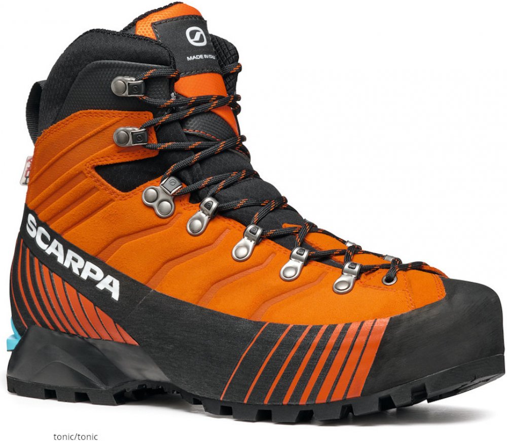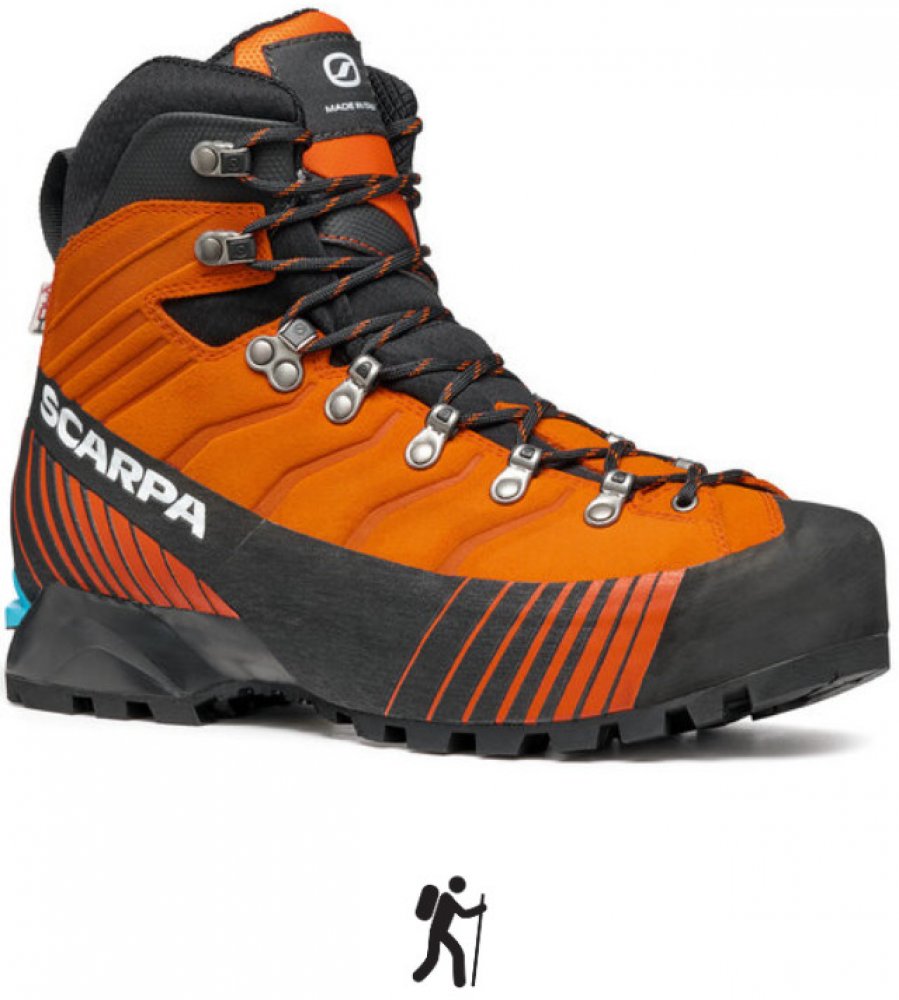Scarpa kotníkové kůže 1380.0 g na náročný horský terén na lezení a ferraty oranžová pohorky Ribelle Lite Hd HDry B5, Vibram zimní na šněrování standardní šířka s plnou výbavou na vysoce náročnou turistiku pro poloautomatické mačky s tuhou podešví s obsázkou po obvodu - 360° PU Vibram