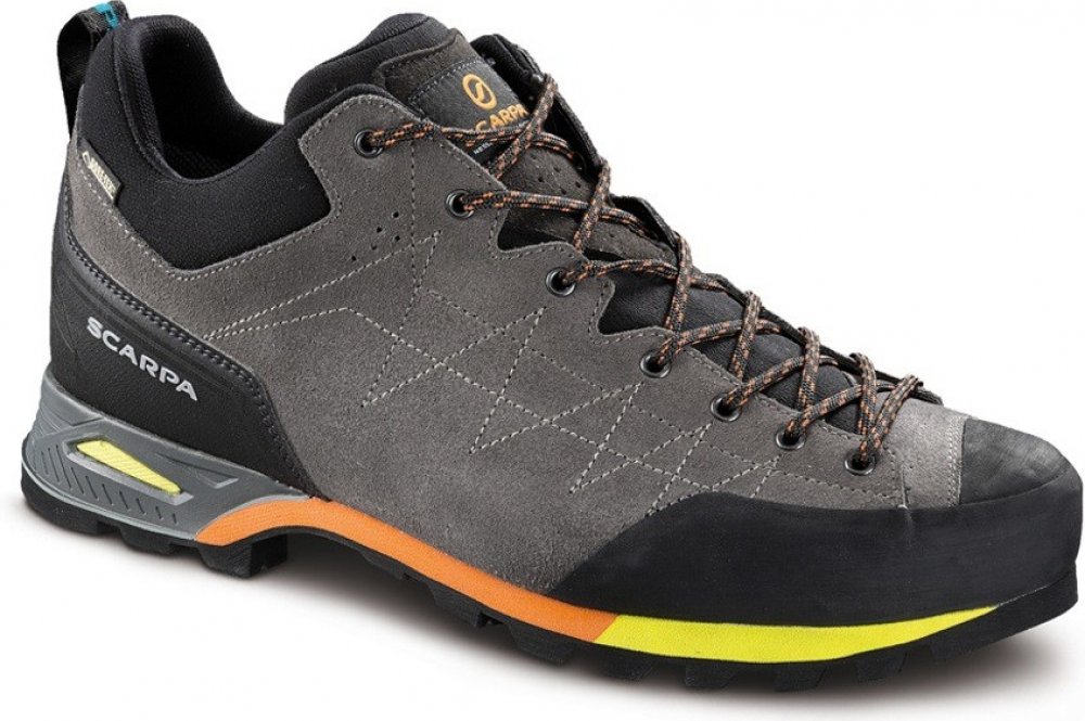 Nejnovější generace jedněch z nejtvrdších nízkých modelů Scarpa. Užijte si maximální komfort ve všestranných a velmi odolných trekových botách Zodiac. Skvěle vám poslouží jak v nejrůznějších terénech, tak i v nástupech a techničtějších pasážích Dokonalé zpracování a jedinečné vlastnosti Trekovky Scarpa Zodiac by neměly chybět ve výbavě žádného dobrodruha, který se rád vydává na ferraty či do skalnatého terénu. Vysoká tvrdost a přiléhavý střih se postarají o bezpečnou a pohodlnou chůzi, celokožený svršek s membránou GORE-TEX® zajistí voděvzdornost, elastická tkanina S-Tech Schoeller, ze které je zhotoven jazyk a horní kraj boty, zajišťuje velmi dobrou prodyšnost. Efekt ponožky Pánské trekové boty Zodiac jsou vybaveny systémem Scarpa Sock-Fit, nazývaný též jako efekt ponožky, který navozuje pocit, že bota je součástí chodidla a umocňuje pocit pohodlí. Bezpečný a jistý došlap v každém terénu. O bezpečnost a komfort se stará podešev Vibram Drumlin tlumící nárazy, stejně jako polstrování a šněrování až do špičky, díky čemuž se trekovky skvěle přizpůsobí vaší noze.