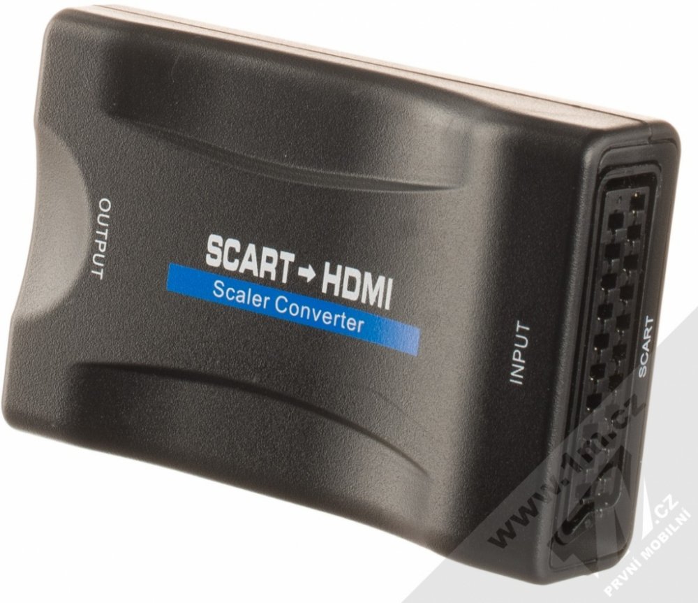 Převodník je připojena k televizoru kabelem SCART (Euro). Zdroj obrazu je připojen k redukci pomocí kabelu HDMI. Pozor, převedený obraz nebude mít stejnou kvalitu jako HDMI.