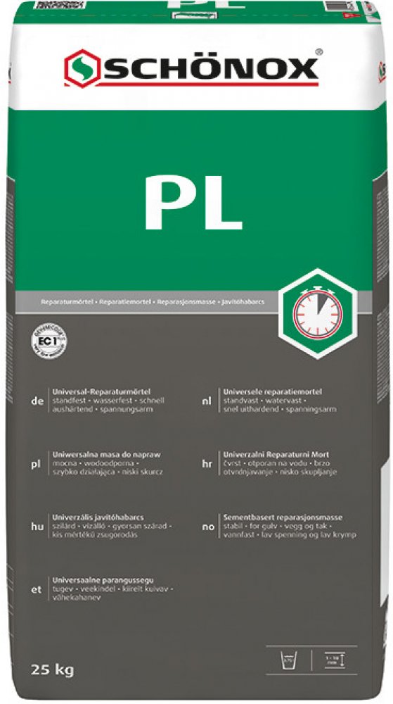 Hmota SCHÖNOX PL je vhodná pro opravy a vyrovnávání: