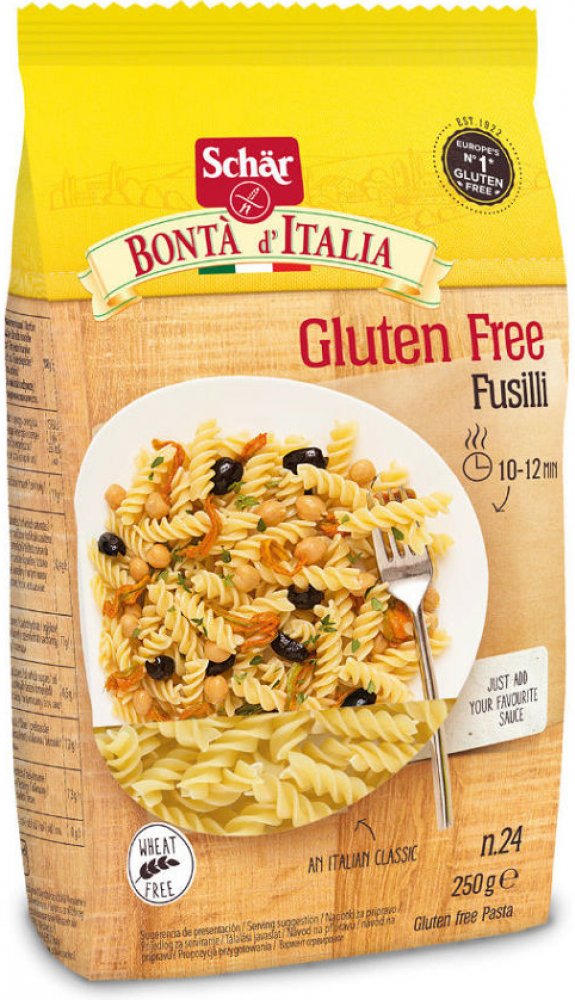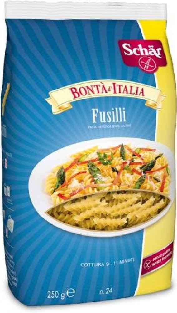 Italská klasika bez lepku! Těstoviny Fusilli od značky Schär jsou vyrobeny z kukuřičné a rýžové mouky, bez lepku, laktózy i pšeničného škrobu. Skvěle se hodí pro každodenní vaření – ať už s rajčatovou, smetanovou nebo zeleninovou omáčkou.