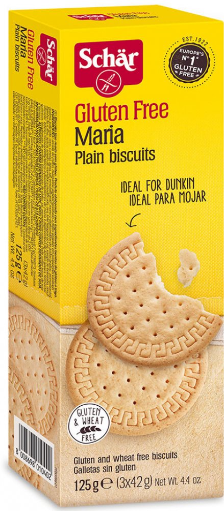 Bezlepkové sušenky Maria jsou sladké kulaté sušenky vyrobené speciálně pro lidi s intolerancí na lepek, vhodné k rychlému občerstvení, při chvílích pohody a při posezení s přáteli. Balení obsahuje 18 sušenek.