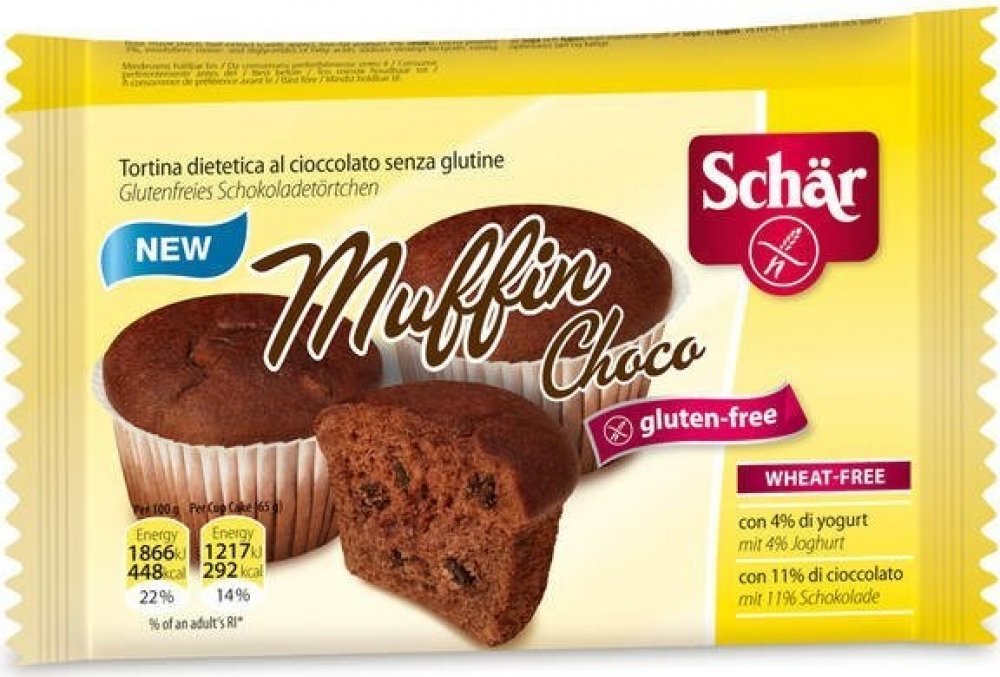 Schar Muffin Choco 65g bezlepkové muffins pro Vaše ranní potěšení u kávy. Jemné pečivo kakaové bez lepku Složení: vejce, slunečnicový olej, cukr, rýžová mouka, čokoláda 11% (kakao 40%, kakaová hmota, kakaové máslo, kakaový prášek, emulgátor: slunečnicový lecitin) kukuřičná mouka, kukuřičný škrob, ovocný extrakt (karobový prášek, jablko, jogurt 4% (mléko), kakaový prášek 3%, emulgátory: mono- a diglyceridy mastných kyselin, Stearoyllaktylát sodný, hydrogenuhličitan sodný, glukono delta lakton; rýžový škrob,vaječný bílek, sůl, zahušťovadlo: xantan, přírodní aroma. Může obsahovat stopy sóji a lupiny. Uchovejte v suchu a chraňte před teplem. Výživové údaje na 100g Energetická hodnota 1866 Tuky 26 g z toho nasycené mastné kyseliny 5.0 g Sacharidy 44 g z toho cukry 25 g Vláknina 5.8 g Bílkoviny 5.8 g Sůl 0.60 g *referenční příjem průměrného dospělého (8 400 kJ/2000 kcal) Schar Muffin Choco 65g - bezlepkové muffins pro Vaše ranní potěšení u kávy. Vyzkoušejte lahodné bezlepkové pečivo s čokoládovou příchutí.