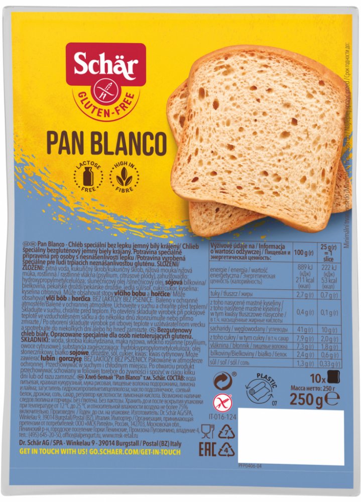 Schär Pan Blanco bezlepkový krájený chléb 250 g