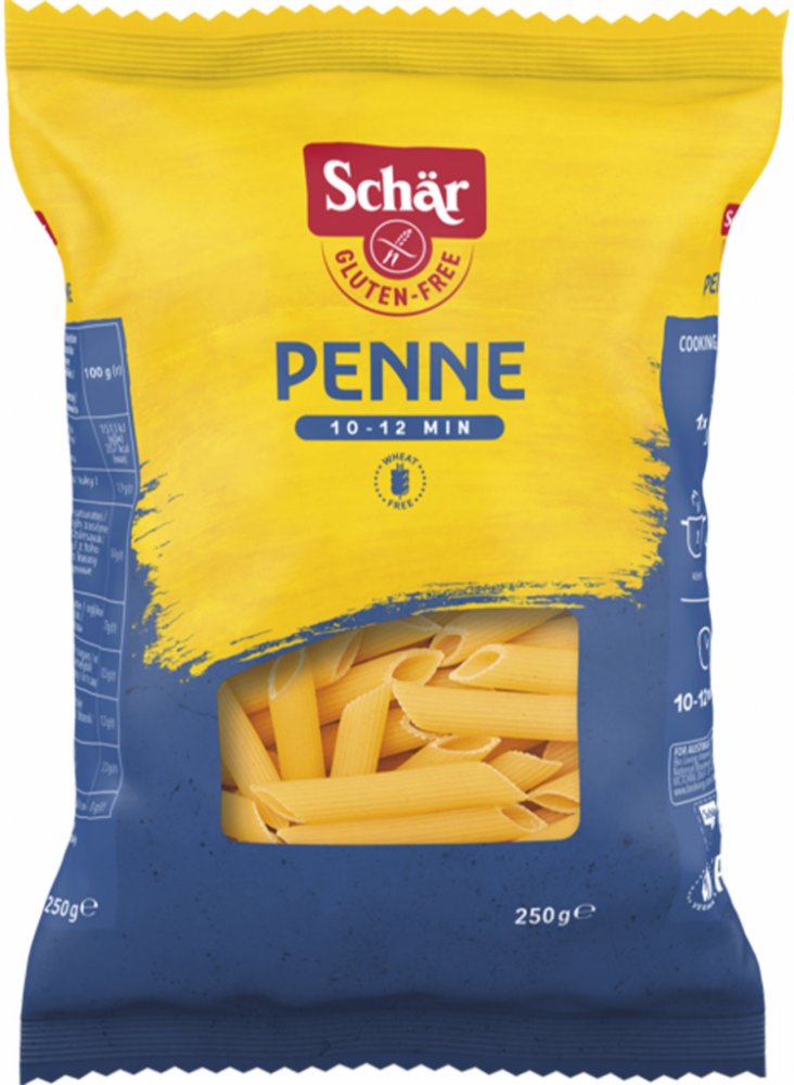 Bezlepkové penne pro každého gurmána! Těstoviny Penne od značky Schär jsou klasické trubičky, které si zachovávají tvar i chuť – bez lepku, bez laktózy, bez vajec a bez pšenice. Vyrobené z kvalitních bezlepkových mouk, ideální pro celiaky, vegany i všechny, kdo si chtějí pochutnat bez kompromisů.