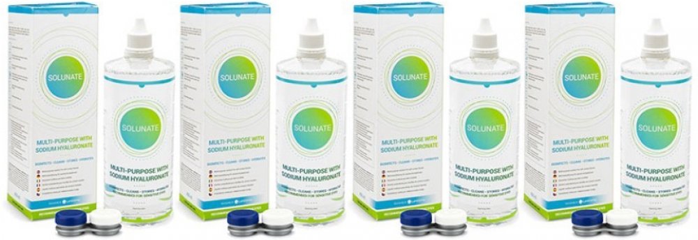 Solunate je nový víceúčelový roztok italské výroby, který uživatelům kromě vysoké kvality nabízí i ekonomicky výhodné balení za příznivou cenu. Větší balení 400 ml vám poskytne možnost používat roztok o 5 dní déle než roztoky v běžné velikosti (360 ml) a to za srovnatelnou cenu. Optimální poměr kvality a ceny řadí roztok Solunate mezi velmi oblíbené roztoky na trhu. Solunate je nejprodávanějším roztokem v našem e-shopu a je skvělou alternativou těch nejlepších roztoků na trhu jako jsou ReNu MPS Sensitive Eyes, Biotrue Multi-Purpose nebo řada OPTI-FREE. Univerzální roztok Solunate s obsahem kyseliny hyaluronové je určený k čištění, dezinfekci, zvlhčování, oplachování a uchovávání všech měkkých kontaktních čoček včetně silikon-hydrogelových. Roztok odstraňuje bílkovinové usazeniny a je vhodný pro citlivé a suché oči. Složení roztoku Solunate je optimálně vyvážené – zaručuje dostatečnou účinnost a zároveň minimalizuje podráždění oka. Díky složení s obsahem kyseliny hyaluronové má roztok Solunate schopnost dlouhodobé hydratace a zabraňuje tak nepříjemnému pocitu suchého oka. Kyselina hyaluronová má vynikající schopnost vázat vodu a v roztoku funguje jako vysoce efektivní lubrikant. Na oku vytváří ochranný film, který snižuje tření mezi očním víčkem a rohovkou, což je blahodárné pro podrážděné a suché oči. Kontaktní čočky tak vydrží dostatečně hydratované po celý den a jejich nošení je ještě pohodlnější a komfortnější. Součástí balení roztoku Solunate je také pouzdro na kontaktní čočky, které je inovativně umístěno přímo na lahvi roztoku a stává se tak její součástí. Díky tomu máte pouzdro při použití roztoku vždy k dispozici a nikdy se vám při cestách neztratí.
