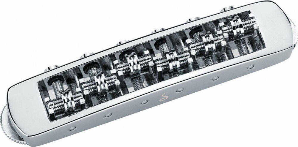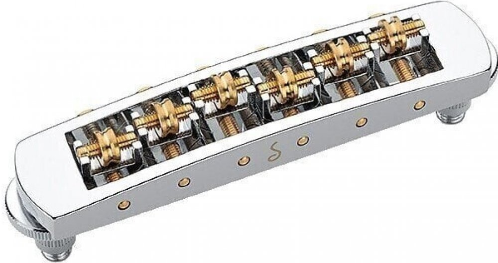 Samostatná kobylka typu STM určená pro elektrické kytary typu Single cut. Kobylka je výškově nastavitelná a je vhodná pro rozteč 74,0 - 74,5 mm. Disponuje 2 rozměrne nastavitelnými válečkovými sedly, které jsou šetrnější k strunám a eliminují časté trhání. Vzdálenost mezi jednotlivými strunami může být flexibilně nastavena. Rozměry: 63 x 18 x 13 mm, hmotnost: 75 g. Barevné provedení: Chrome