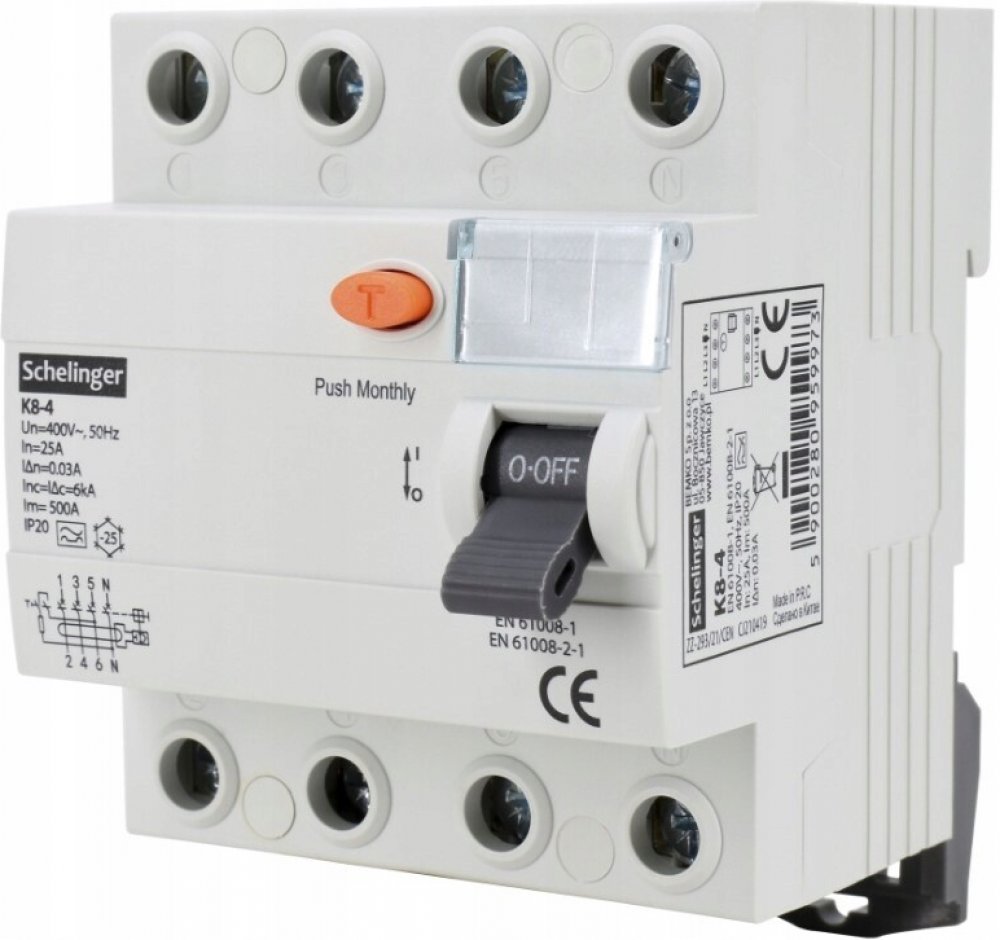 Čtyřpólový proudový chránič 25A 30mA typ A SCHELINGER A03-K8-4-25-030