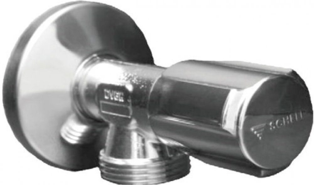 Schell Comfort pračkový ventil 1/2˝×3/4˝ se zpětnou klapkou • materiál: mosaz• movrch: lesklý chrom• průměr rozety: 5,4 cm• hmotnost: 0,17 kg• sanitární vršek se zpětnou klapkou: ano• hlučnost: třída hlučnosti: I• instalace: do přívodních systému k pračkámKvalitní rohové ventily Shell se