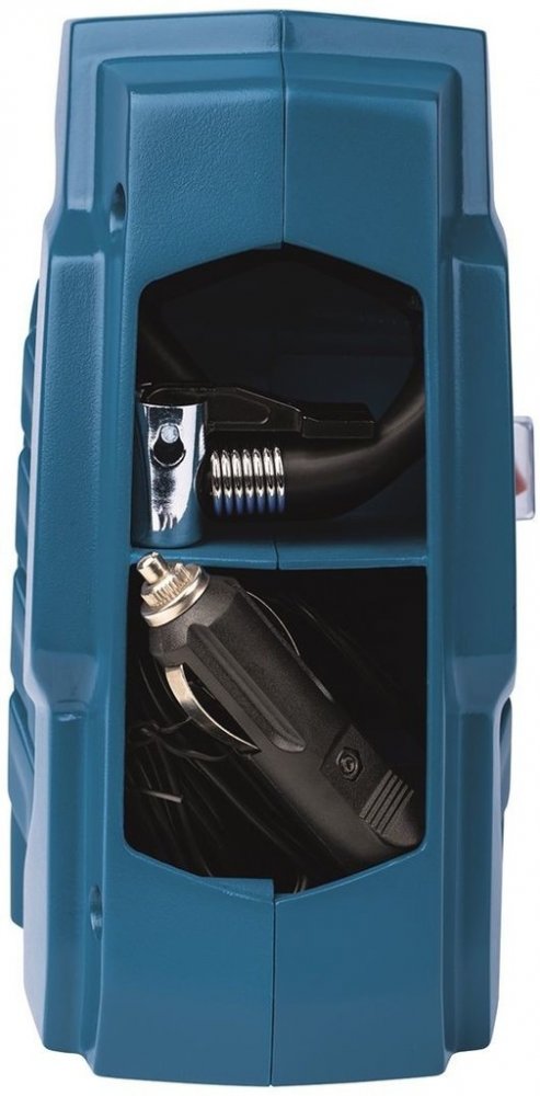Veškeré příslušenství, včetně dvou elektrických kabelů, tlakové hadice 0,6 m a čtyř různých koncovek je chytře ukryto uvnitř kompresoru, takže se Vám nic neztratí.