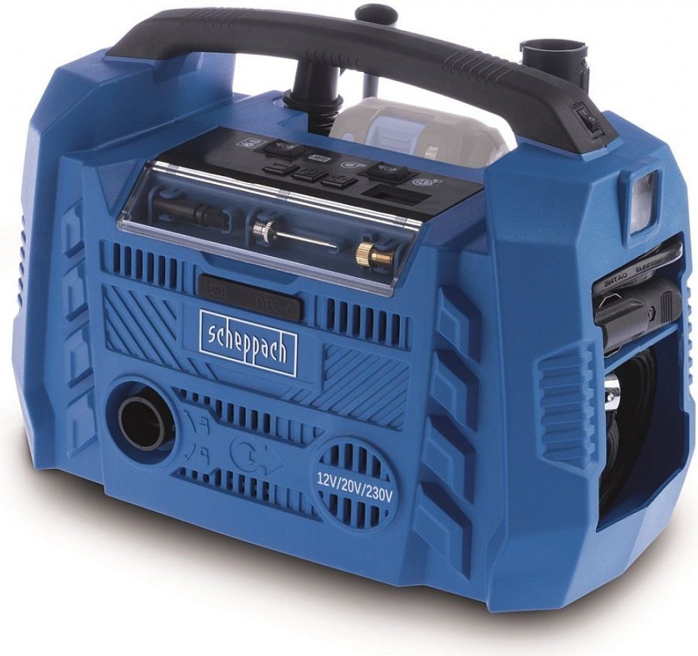 Air Force 6 - hybridní kompresor (20 V aku, 12 V, 230 V)Potřebujete praktický kompresor, který vás nezklame doma, na cestách nebo při outdoorových aktivitách? Mobilní kompresor Scheppach Air Force 6 nabízí maximální flexibilitu díky možnosti tří zdrojů napájení a širokým možnostem použití, ať už…