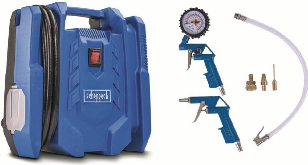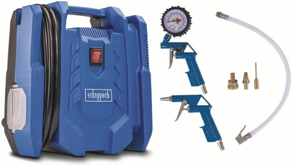 Scheppach AIR FORCE 7 – Bezolejový mobilní kompresor pro domácnost, kempování i outdoorové aktivityScheppach AIR FORCE 7 je praktický, skladný a výkonný bezolejový kompresor, který je ideální pro každou domácnost, chatu, karavan či loď. Díky silnému motoru 1100 W, maximálnímu pracovnímu tlaku 8…