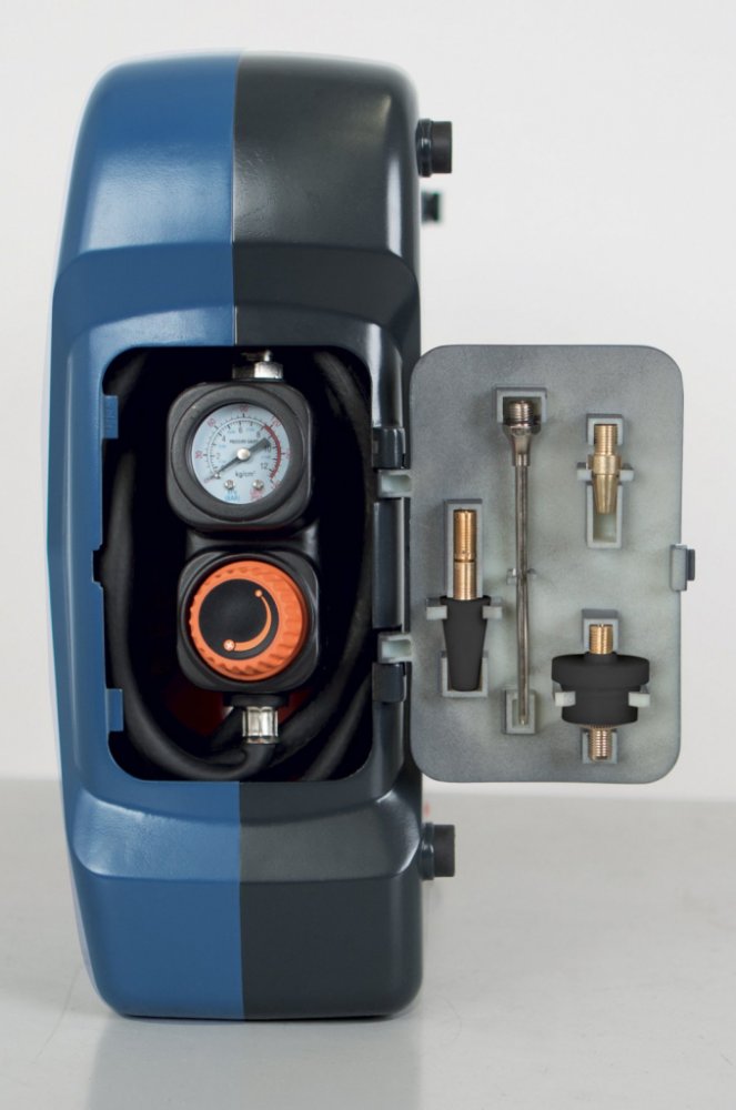 * Nadstandardní výbava zahrnuje vzdušník o objemu 2 l, díky kterému si dofouknete kolo ve sklepě i bez nutnosti přívodu elektřiny, 9 různých koncovek, díky kterým nafouknete vše od míče, přes pneumatiky a lehátka, až třeba po nafukovací bazén, 3 m hadici s integrovaným manometrem a ovladačem nastavení tlaku, praktickou ofukovací pistoli, integrované prostory pro uložení příslušenství i hadice, pohodlné madlo a manometr vzdušníku.