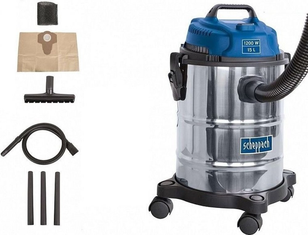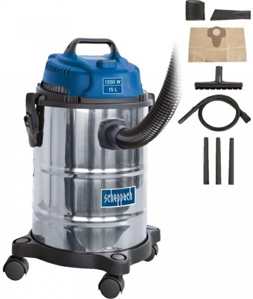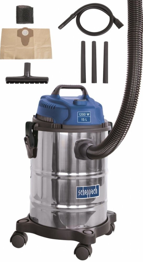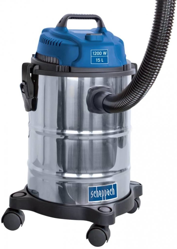 Scheppach ASP 15-ES je lehký, kompaktní a výkonný vysavač na mokré i suché vysávání s kapacitou zásobníku 15 l.