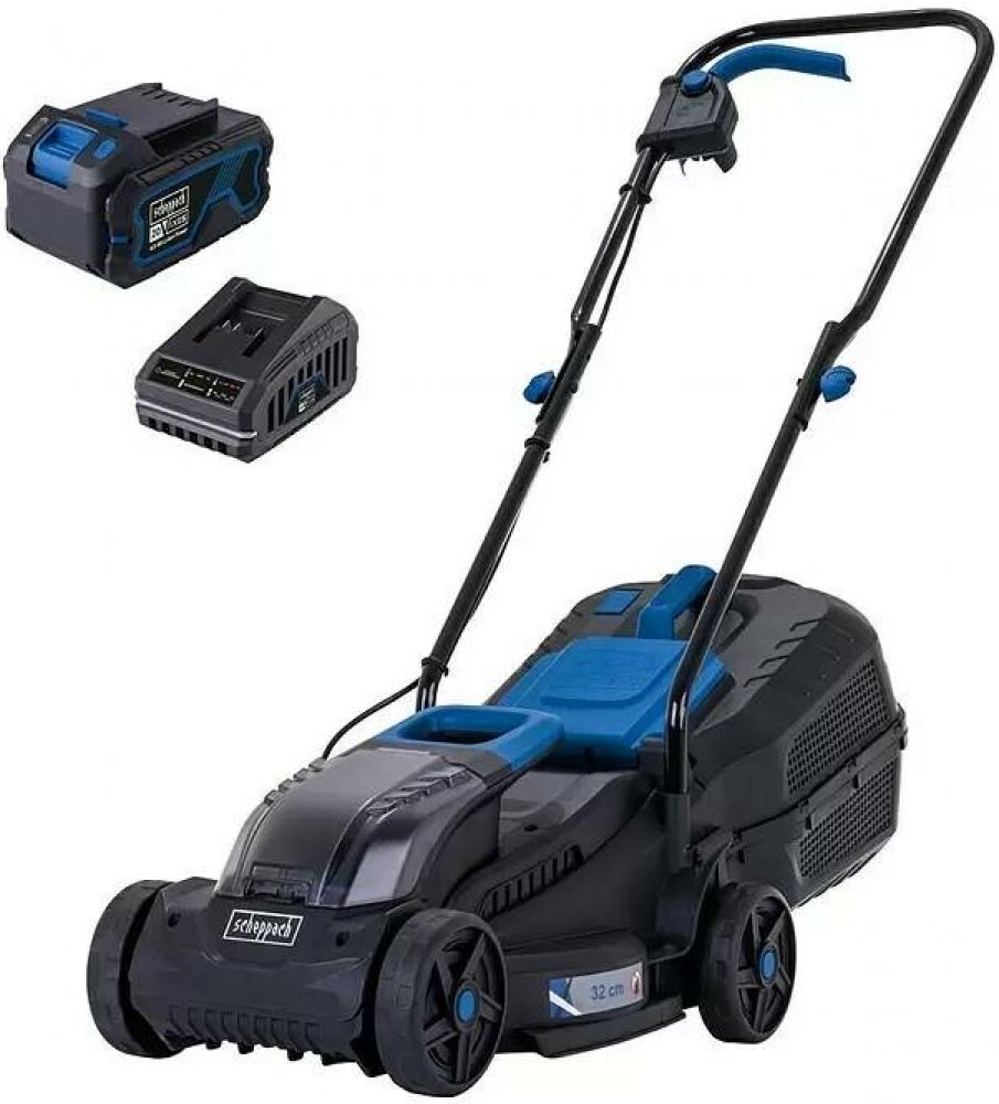 Scheppach 32 cm 8.5 kg bez pojezdu akumulátorové 30 l 20 V 4 Ah elektromotor 60 mm s plastovým košem