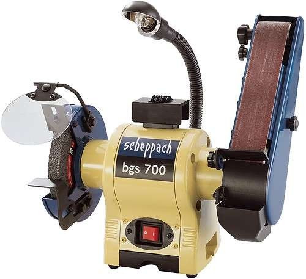 Kombinovaná bruska Scheppach BGS 700 má hrubší a jemný brusný kotouč a je ideální k broušení jak kovových, tak i nekovových, dřevěných a plastových materiálů.