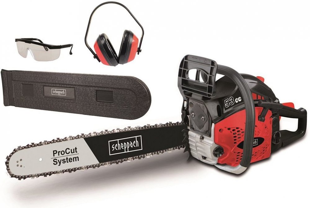 Benzínová pila Scheppach BKS 5300 S je výkonná univerzální pila, vhodná na příležitostné kácení stromů, prořezávání keřů, přípravu palivového dřeva a další práce okolo domu, v sadu nebo lese. Je osazena kvalitní lištou i řetězem. Řez tak bude vždy rychlý, bezpečný a hladký. Obrovskou výhodou pro běžného uživatele je vyspělý systém snadného startování, kdy je díky pomocné pružině ve startovacím mechanismu vždy zaručen velmi lehký a pohodlný start pily bez potřeby silného tahání za startovací šňůru. Další výbava zahrnuje moderní elektronické zapalování, automatické mazání řetězu, brzdu motoru, nastřikovací pumpičku pro snadné starty, kvalitní vzduchový filtr pro dlouhou životnost motoru a antivibrační systém. Pila má silný motor o objemu 53 cm3, je skvěle vyvážená, díky použití moderních materiálů je poměrně lehká a držadlo umožňuje snadné držení pily v různých polohách. Součástí bohaté dodávky je i ochranný kryt lišty, sluchátka a ochranné brýle.