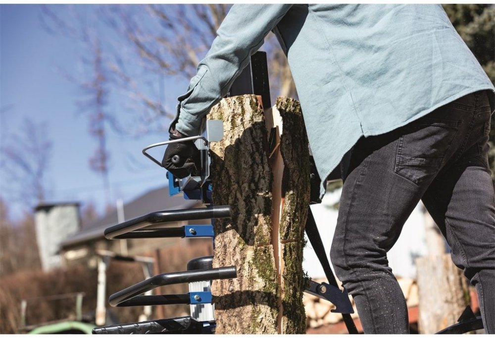 Na stroji naleznete systém rychlého a automatického návratu pístu, bezpečnostní obouruční ovládání, nízkou základnu s rozšířením pro dokonalou stabilitu, přídavný výkyvný stolek pro štípání polen různé délky v různých výškách, bezpečnostní ramena chránící poleno proti vypadnutí, integrovaný zvedák těžkých polen pro snadnou manipulaci i s těžkými kmeny a štípací klín, který si poradí i s poleny o průměru až 380 mm.