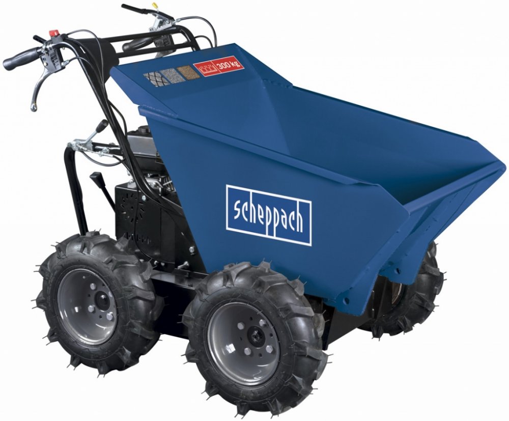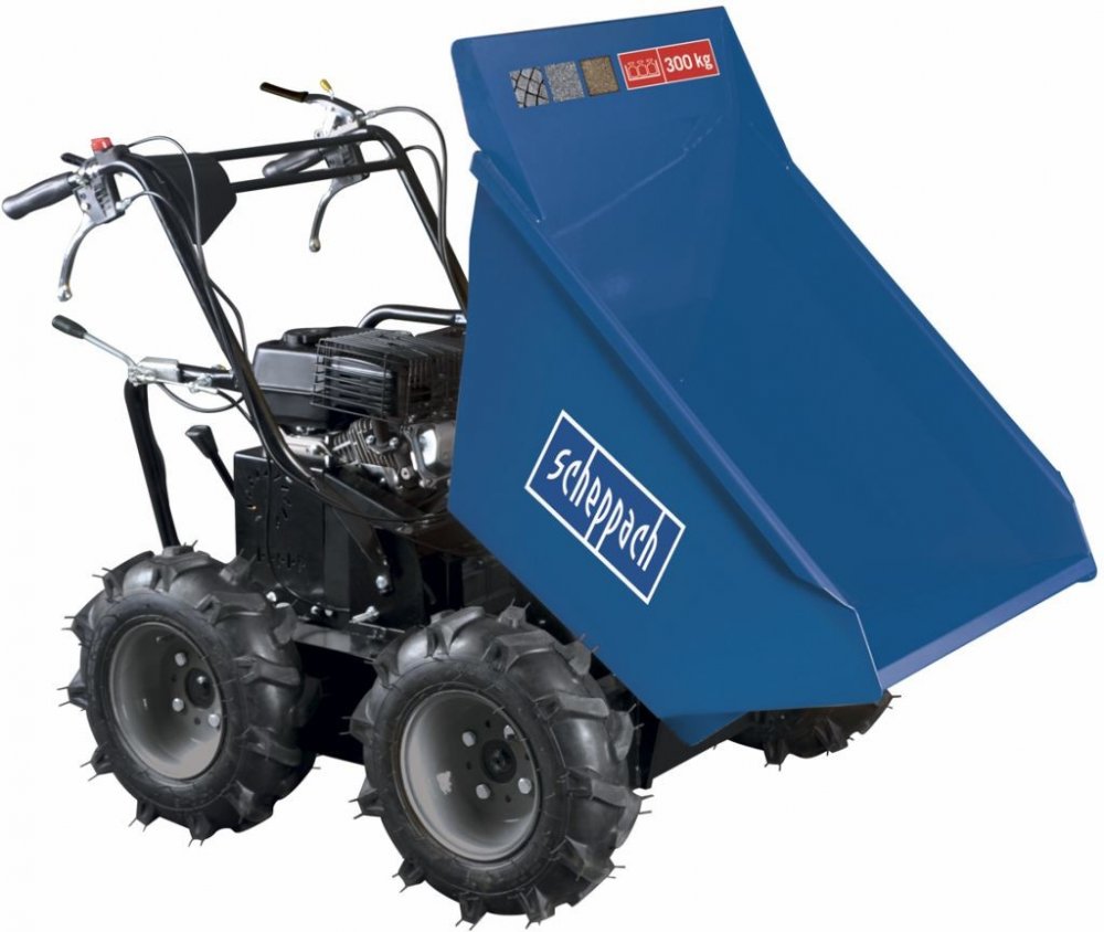 Kolový přepravník SCHEPPACH DP 3000 vám umožní velmi pohodlnou přepravu až 300 kg sypkých i pevných materiálů i na velmi špatně přístupných místech. Skvěle se hodí na přepravu zeminy, písku, štěrku, kamenů, dlažby, cihel, ale třeba i dřeva nebo trávy. Hojně se využívá na staveništích, při demolicích či rekonstrukcích objektů, při výkopových pracích, v zemědělství, zahradnictví, lesnictví ap. Výhodou je nejenom větší bezpečnost a průchodnost i v těžším terénu, ale i výrazně vyšší produktivita práce oproti běžným manuálním přepravním prostředkům. Pohon všech čtyř kol zaručuje skvělou průchodnost i velkou svahovou dostupnost, přičemž velká a široká kola přispívají ke snadné ovladatelnosti a ochraně podkladu. Obsluha všech ovládacích prvků je velmi jednoduchá. Páčkami na rukojeti snadno řídíte otáčení, brzda se aktivuje automaticky při uvolnění páky spojky a rovněž páka řazení třístupňové převodovky je ve snadném dosahu obsluhy. Pro pohon je použit velmi oblíbený motor Loncin s vysokým výkonem 6,5 HP, který patří k nejoblíbenějším a nejspolehlivějším pohonným jednotkám vůbec. Stroj lze dovybavit sněhovou radlicí o rozměrech 100 x 50 cm.