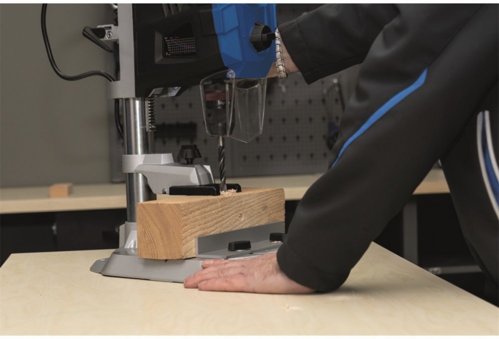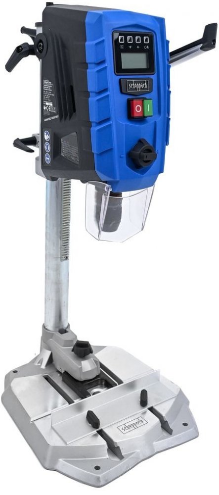 SCHEPPACH DP 60 představuje moderní a uživatelsky přívětivé pojetí stojanové vrtačky vhodné do každé domácí dílny. Stroj je díky použití profesionálních komponentů velmi přesný a intuitivně se ovládá. Díky silnému motoru, dvoustupňové převodovce (1 stupeň, pokud potřebujete velkou sílu a 2 stupeň, pokud potřebujete vysoké otáčky) a plynulému elektronickému nastavení rychlosti otáček, si vždy zvolíte ideální parametry vrtání. Velký displej zobrazuje jednak hodnotu nastavení otáček a rovněž hloubku vrtání. Spolu s nastavitelnou hloubkovou zarážkou tak můžete vrtat libovolný počet stejně hlubokých děr. Přesnost práce vám zvýší i přesný křížový laser, LED osvětlení pracovního prostoru, velké otočné madlo (lze namontovat z obou stran pro praváky i leváky) s měkčenou protiskluzovou úpravou a profesionální rychloupínací sklíčidlo s automatickým utahováním vrtáku. Pracovní stůl je jednak vybaven rychloupínací svorkou, která umožňuje sevřít i kruhové obrobky a dále drážkami, do kterých lze upnout příslušenství, jako například standardně dodávané paralelní vodítko. Stroj samozřejmě splňuje poslední požadavky evropské unie na bezpečnost, jako je např. hlavní vypínač umístěný na čele stroje, průhledný kryt sklíčidla ap. Stroj je umístěn na stabilním podstavci s možností pevného uchycení šrouby k pracovní desce.