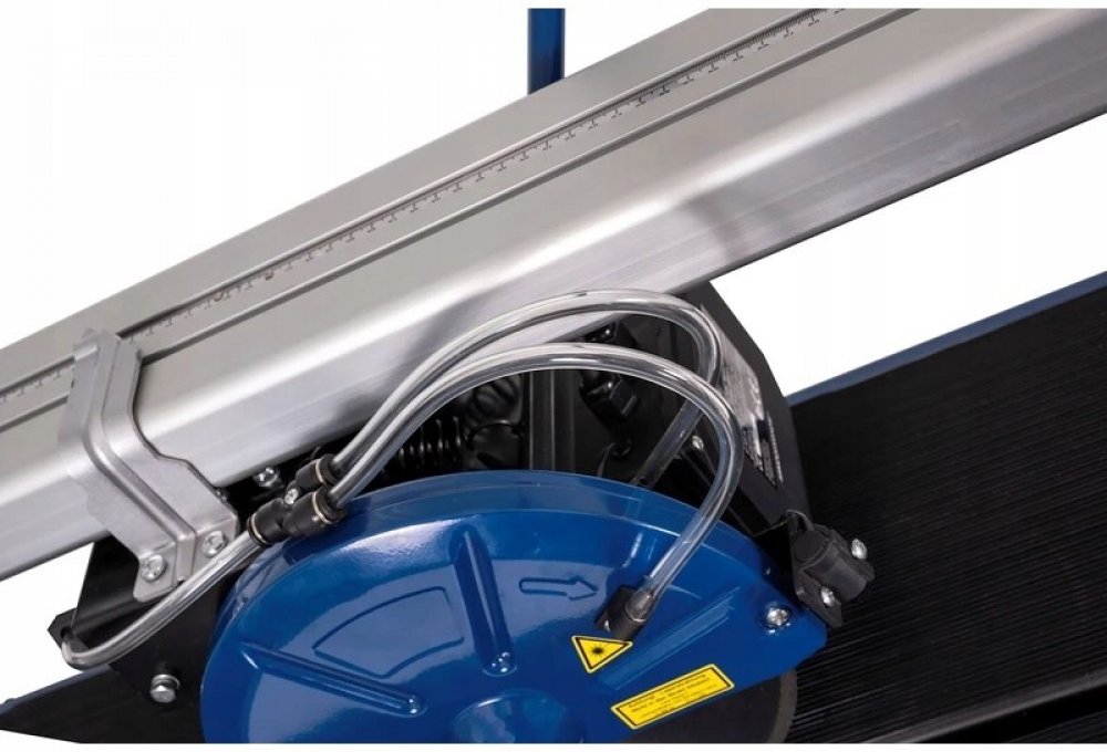 Řezačka umožňuje i řezy na pokos a na dvojí pokos. Stůl je vybaven přesnou milimetrovou stupnicí, úhlovým dorazem a podélným dorazem. Chlazení řezného kotouče vodou a bezprašnou práci zajišťuje integrované čerpadlo.
