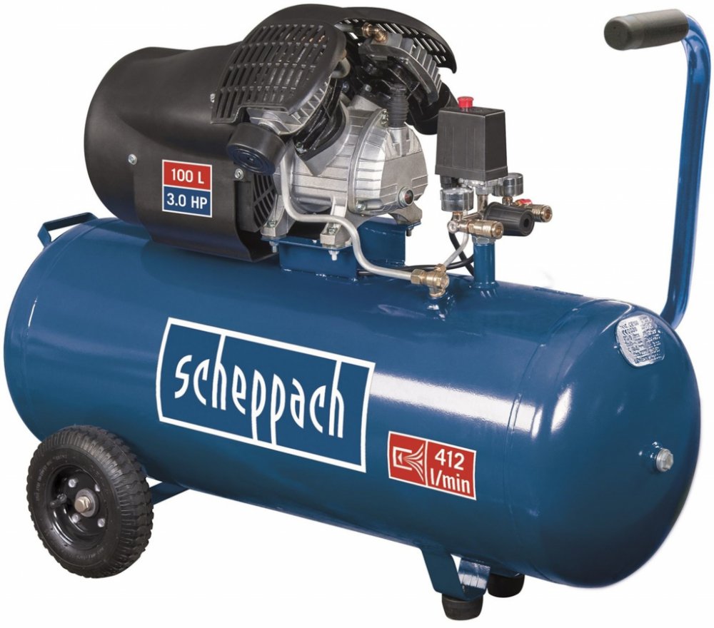 Kompresor Scheppach HC 120 DC je skvělým řešením pro velmi náročné uživatele z řad domácích kutilů, autodílen, truhlářství a dalších provozů. Díky velkému obsahu vzdušníku 100 l a tlaku až 10 barů se hodí hlavně tam, kde je dostatečná zásoba tlakového vzduchu potřeba například k pohonu široké škály pneumatických nástrojů, jako jsou vrtačky, rázové utahováky, sponkovačky, stříkací pistole a podobně. Pro snadnou výměnu nástrojů jsou oba výstupy opatřeny rychlospojkami. O rychlé natlakování nádoby a vysoký sací výkon 412 l/min. se stará výkonná dvouválcová jednotka o výkonu 3 PS. Ta je mazána olejem, což spolu s dvouválcovou technologií dává záruku velmi dlouhé životnosti. Snadnou manipulaci se strojem zajišťuje velké madlo a vzduchem plněné pneumatiky. Další výbava: manometr vzdušníku, manometr pro kontrolu nastaveného pracovního tlaku, redukční ventil, tlakový spínač, odkalovací ventil, zpětný ventil, pojistný ventil, vzduchový filtr, optický ukazatel stavu hladiny oleje, pojezdová kola, rukojeť.