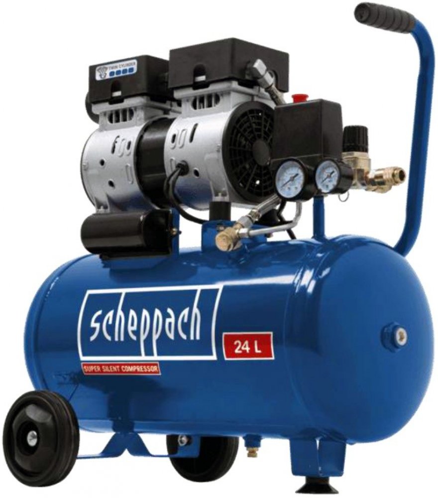 * Kompresor Scheppach HC 24 Si je tichý bezolejový dvouválcový kompresor, který je vhodný i do míst a provozů s vysokými požadavky na nízkou míru hluku. Hlučnost 68 dB znamená hladinu hluku zhruba na úrovni bublání varné konvice, takže v praxi budete vnímat hluk tohoto kompresoru pouze minimálně.