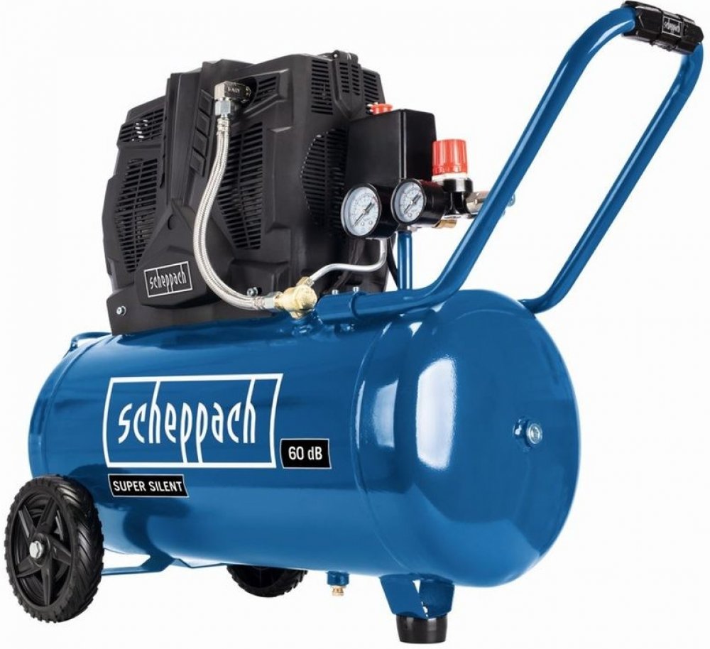 Kompresor Scheppach HC 51 Si je tichý bezolejový dvouválcový kompresor, který je vhodný i do míst a provozů s vysokými požadavky na nízkou míru hluku. Hlučnost 60 dB (A) znamená hladinu hluku zhruba na úrovni bublání varné konvice, takže v praxi budete vnímat hluk tohoto kompresoru pouze minimálně. Další výhodou je bezolejová technologie, která znamená, že do vzdušníku ani dále do spotřebiče vzduchu, neunikají žádné olejové páry. To se hodí v potravinářství, u speciálních lakýrnických prací nebo třeba při tlakování výčepních zařízení. Bezolejová technologie znamená rovněž mnohem nižší nároky na údržbu celého stroje. Scheppach rovněž odstranil běžnou nevýhodu tichých kompresorů, a to poměrně nízký sací výkon. Díky nové technologii je sací výkon 300 l/min téměř dvakrát vyšší, než je běžné a je plně srovnatelný s klasickými kompresory. Velký vzdušník o objemu 50 l slouží jako zásobárna stlačeného vzduchu a motor se tak automaticky zapíná jen v případě, že tlak vzduchu klesne pod požadovanou úroveň. Vzdušník rovněž výrazně rozšiřuje možnosti kompresoru a stroj se tak stává opravdu multifunkčním pomocníkem. Díky němu můžete s kompresorem, mimo běžného huštění a ofukování, provádět i náročnější operace s použitím různých druhů pneumatického nářadí (sponkovačka, hřebíkovačka, apod). Kompresor je vybaven manometrem vzdušníku i manometrem pro kontrolu pracovního tlaku. Přídavné madlo a kolečka umožní snadnou manipulaci se strojem, antivibrační podstavec zase zajistí klidný chod stroje.Případné bezpečnostní pokyny, výstrahy a upozornění jsou součástí návodu k obsluze, který je k dispozici v sekci KE STAŽENÍ.