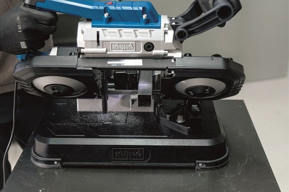Scheppach MBS 1200 je skvělým nástrojem pro řezání kovových trubek a dalších kovových i plastových materiálů až do tloušťky 127 mm. Velkou výhodou této pily je její univerzálnost. Dá se použít jako stacionární nástroj, kdy je připevněna k podstavě nebo se dá volně používat bez podstavy, takže řezání již zamontovaných součástí nebo profilů v prostoru se stává hračkou. Díky elektronicky nastavitelné rychlosti řezání je pila vhodná na ocel, nerezovou ocel, železo, různé druhy slitin, měď, PVC, teflon apod. Pila má nastavitelný úhel řezu, nastavitelnou rukojeť, LED osvětlení a svěrák, jako součást základny. Díky své univerzálnosti je skvělým pomocníkem při řešení mnoha úkolů jak v dílně, tak mimo ni. Podstava i dva pilové pásy jsou součástí dodávky.