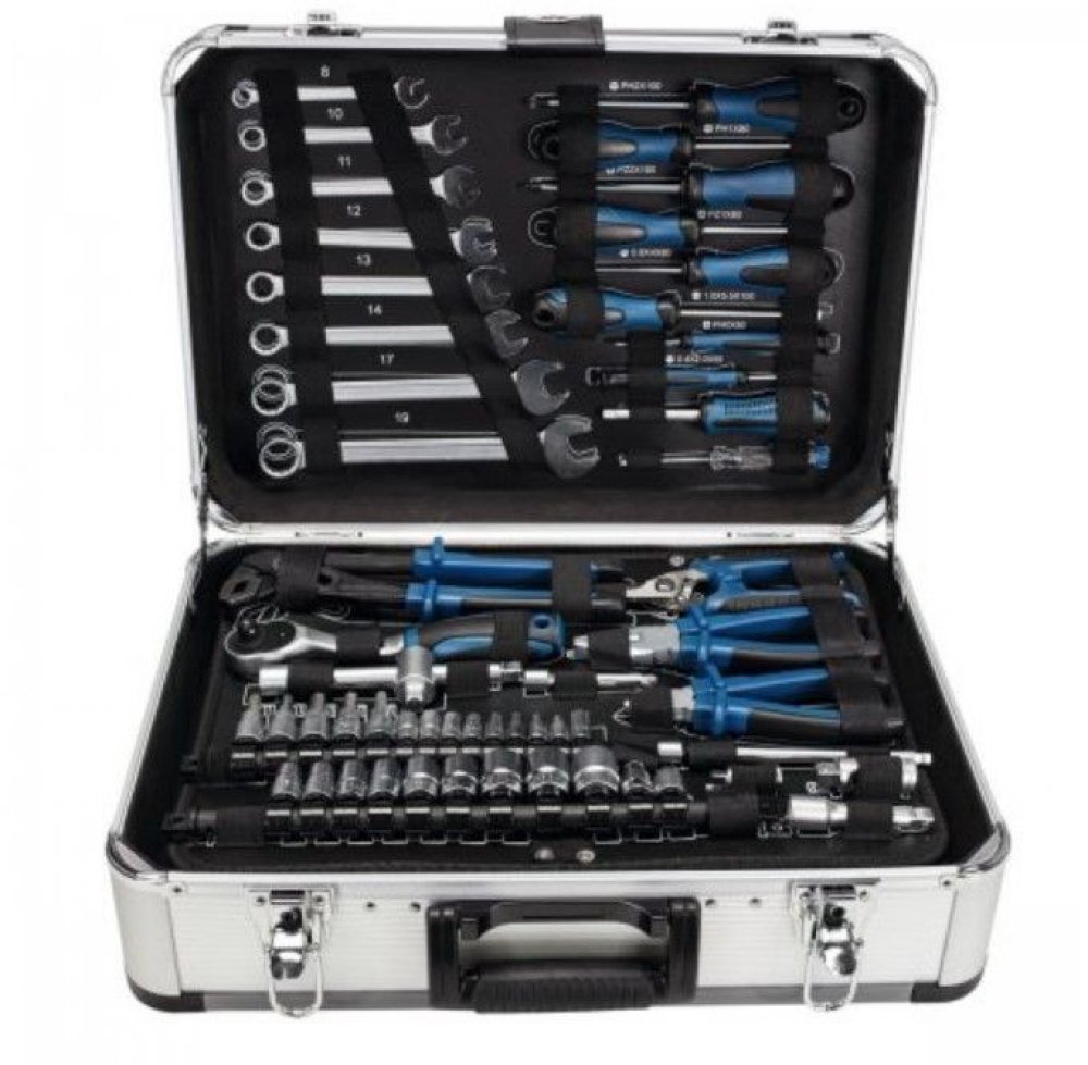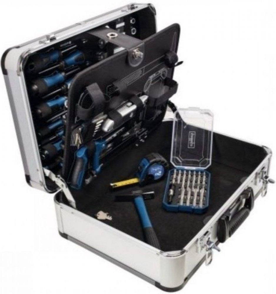 Sada nářadí v kufru 101 ksScheppach TB 150 je velmi praktická sada nejpotřebnějšího nářadí (101 ks) ukrytá v robustním celokovovém kufru.