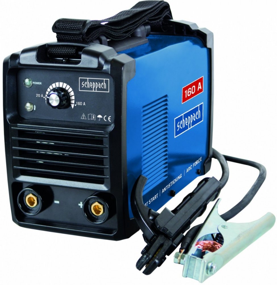 Svářecí invertor Scheppach WSE 900 je kompaktní, lehká, snadno ovladatelná a velmi výkonná svářečka, která se hodí pro svářecí práce v garážích, dílnách, lehkých řemeslných provozech, okolo domu, chalupy apod. Dodává se v praktickém setu, ve kterém naleznete vše potřebné k tomu, abyste mohli ihned začít svařovat – kabel se zemnícími kleštěmi, kabel s držákem elektrod, ochranný štít, kladívko na strusku s drátěným kartáčem, 3x svářecí elektrodu a popruh na rameno a výklopné madlo pro snadné přenášení. Stroj je vybaven účinným chlazením a ochranou proti přehřátí a rovněž ochranou proti přetížení se světelnou indikací. Svařovací proud lze nastavit postupně otočným ovladačem v rozmezí 20 až 160 A. Stroj byl se skvělými výsledky testován českými profesionálními svářeči a odbornými prodejci svářecí techniky. Díky vybavení nejmodernějšími technologiemi, které ulehčují svařování, se hodí nejenom pro zručné svářeče, ale i pro naprosté začátečníky.