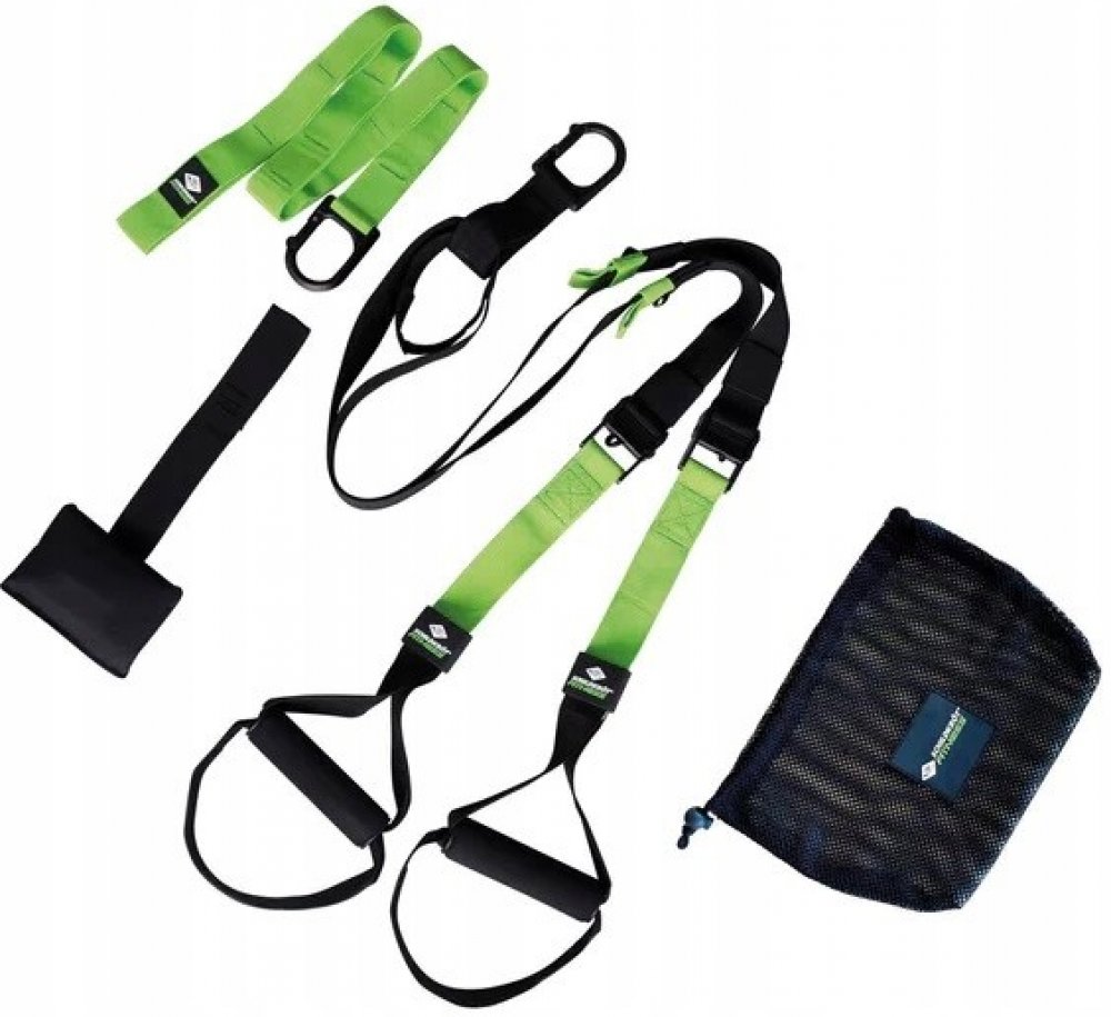 Multifunkční závěsný Suspension Trainer Schildkröt na bázi TRX pro posilování doma. Jednoduše zavěsíte za dveře a posilujete záda, ramena a břicho. Všemožné cviky jsou úplně stejné se závěsným systémem TRX. Popruhy s délkou 180 cm, šířkou 4 cm a masivní rukojeti z 25 mm silné ocelové konstrukce zaručují nosnost až 120 kg. Sada obsahuje: popruhy a madla na cvičení včetně manuáluzávěsný systém za dveře cedulku na kliku "nerušit cvičím"praktickou tašku