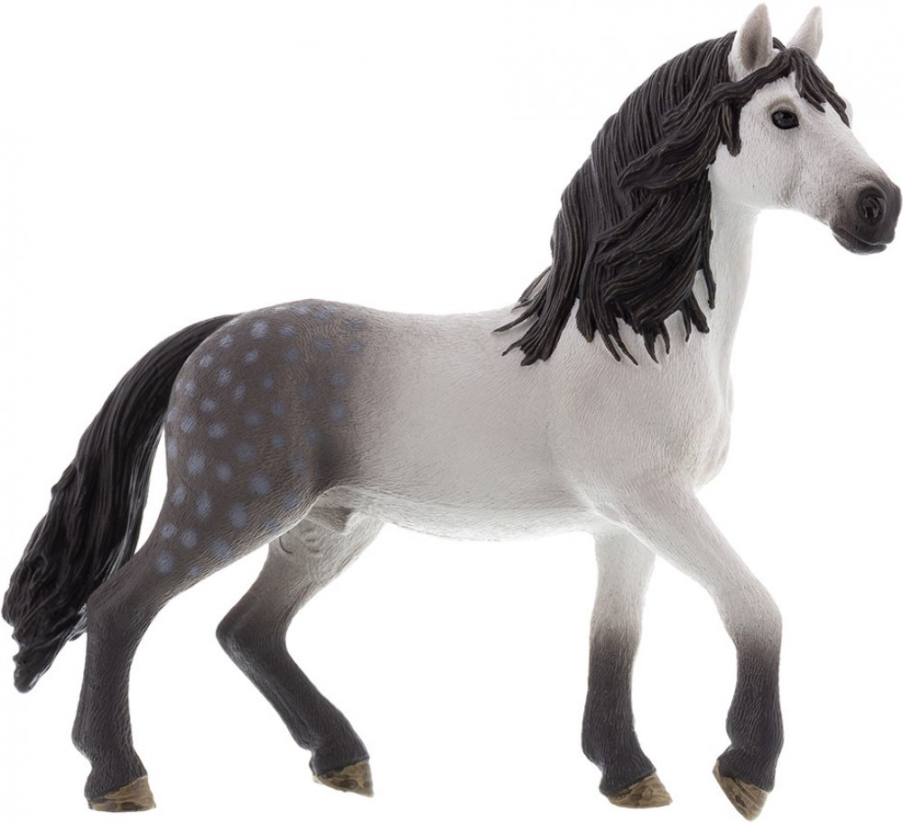 Detailně zpracovaná, ručně malovaná plastová figurka - kůň andaluský hřebec, od Schleich. Detailní, realistický vzhled. Velikost 14cm.