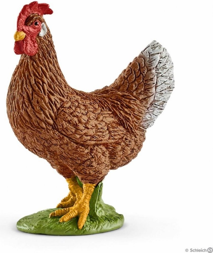 Figurka hnědé slepice s jejím typickým hřebínkem na hlavě, čeká na děti od tří let. Holčičky a kluci si mohou tuto figurku přiřadit do sbírky hospodářských zvířátek. Děti se při hraní s těmito figurkami seznamují s novými druhy, které se učí poznávat.