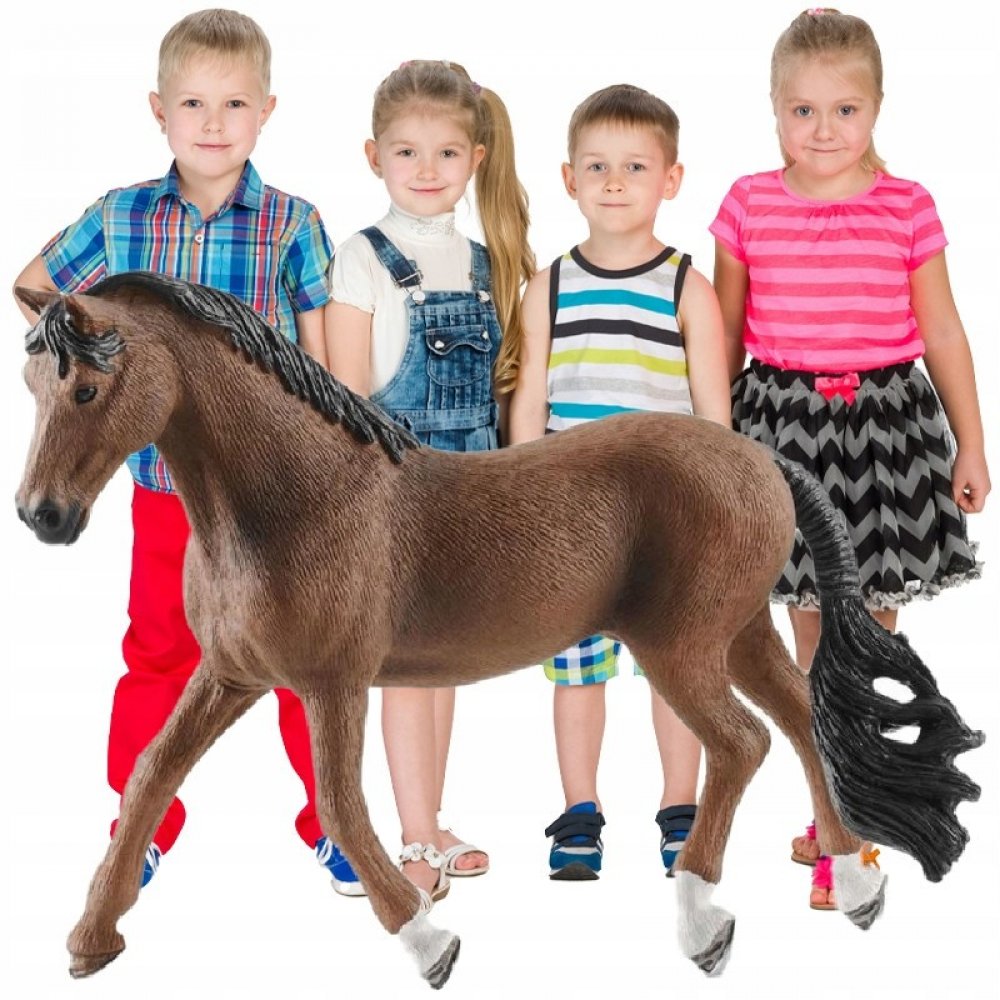 Plemeno Trakehner - Valach 13909 je kůň staropruského původu. Trakehnerští koně jsou považováni za velmi ušlechtilé plemeno teplokrevných koní. Dynamická póza valacha Trakehner ze série Schleich® Horse Club umožňuje rozpoznat velkou vitalitu, eleganci a temperament tohoto plemene. Trakehnerští koně jsou nadaní sportovní koně a často získávají medaile na turnajích. Díky své vytrvalosti a inteligenci jsou spolehliví zejména v všestranné soutěži jezdeckých koní a při sportovních koňských rally. Ocas kaštanového valacha Trakehner ze série Schleich® Horse Club je spleten do nádherného francouzského copu.