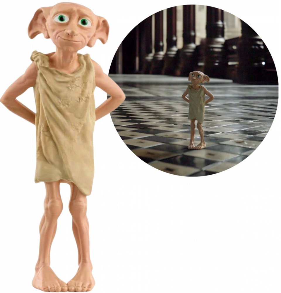 Dobby dokáže i bez hůlky vyvolávat mocná kouzla a až do smrti věrně slouží své kouzelnické rodině, kde musí bezvýhradně poslouchat každý příkaz svého pána. Domácí skřítek Dobby je oblečený jen do povlaku na polštář a ruce schovává za zády. Dobby se na tebe laskavě dívá svýma zelenýma očima, které doplňují jeho velké uši a špičatý nos.