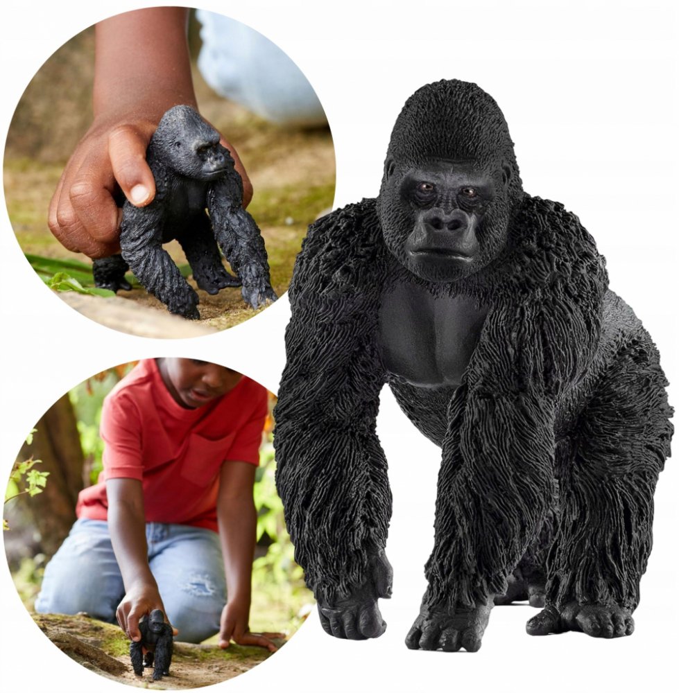 Balení obsahuje figurku gorilího samce. Gorilí samci se často bijí pěstmi do prsou. Chtějí tím ukázat, kdo je nejsilnější ve skupině. Klepání může být ale také druh pozdravu. Gorily neběhají po vnitřních stranách rukou, ale po jejich kloubech. To je označováno jako „kloubová chůze".
