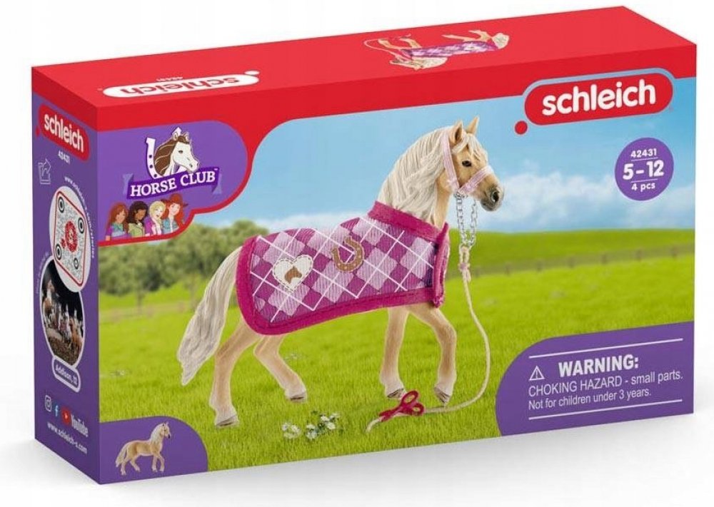Ručně malovaná, detailně propracovaná sada koně s dekou a doplňky.